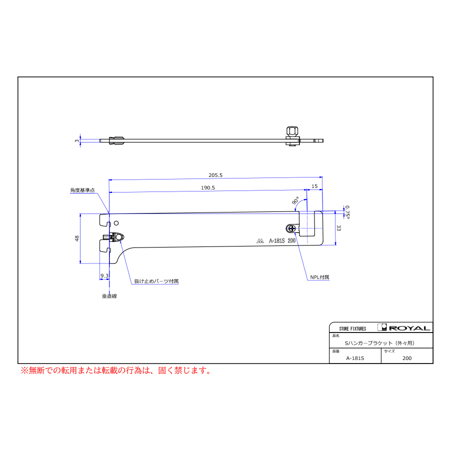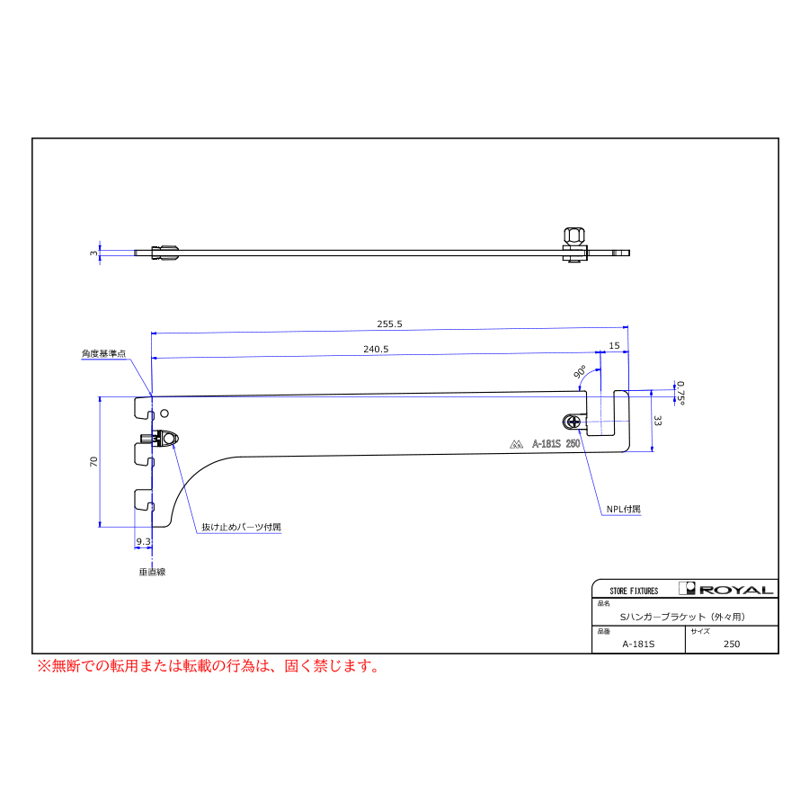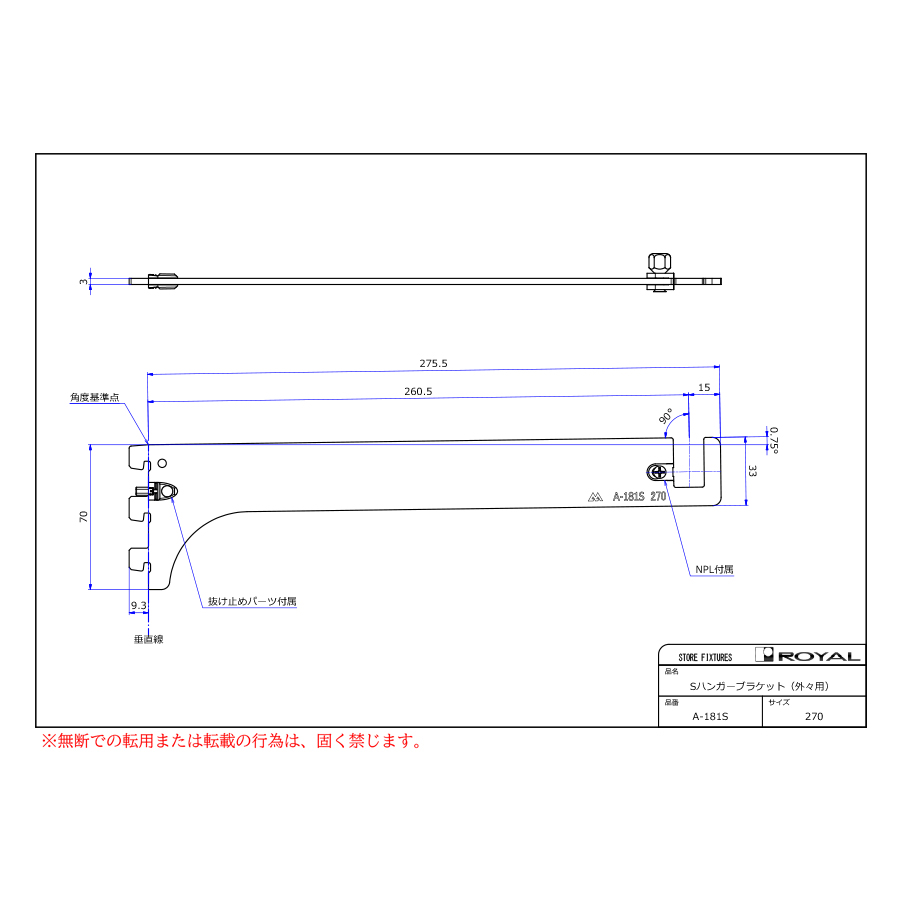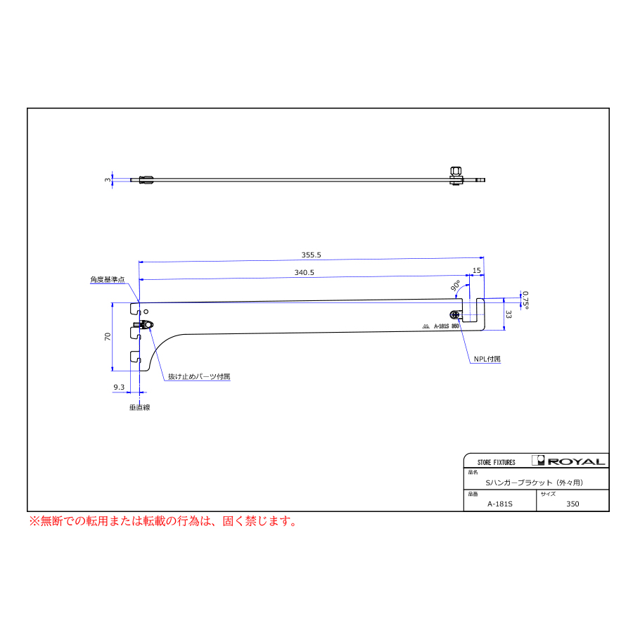 ●ブラケット装着時、無負荷状態では0.75°UPしております。(但し、t=2.0の棚柱のみ)