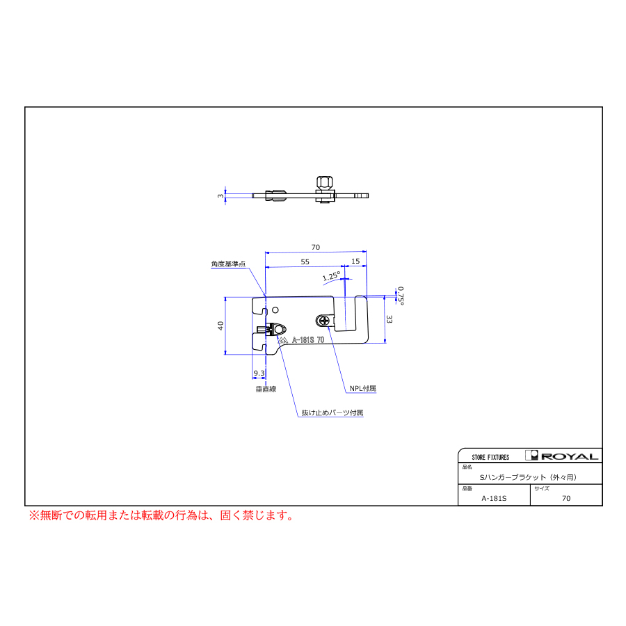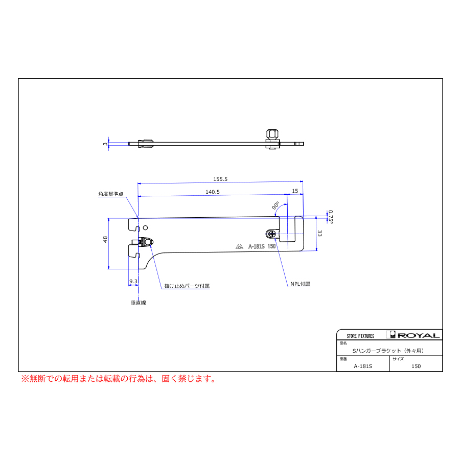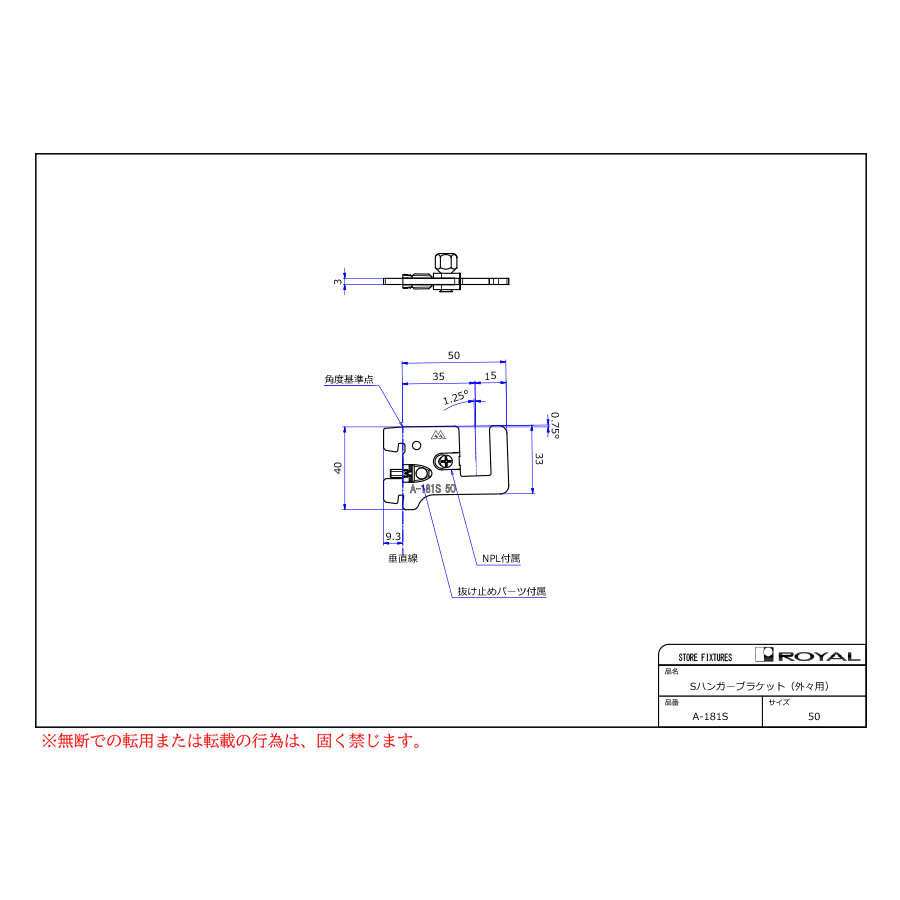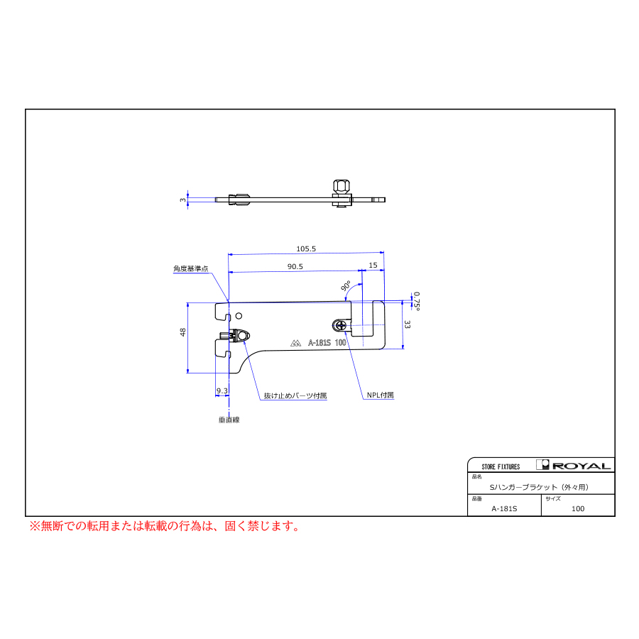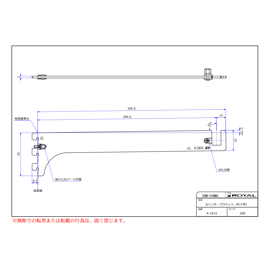 ●ブラケット装着時、無負荷状態では0.75°UPしております。(但し、t=2.0の棚柱のみ)
