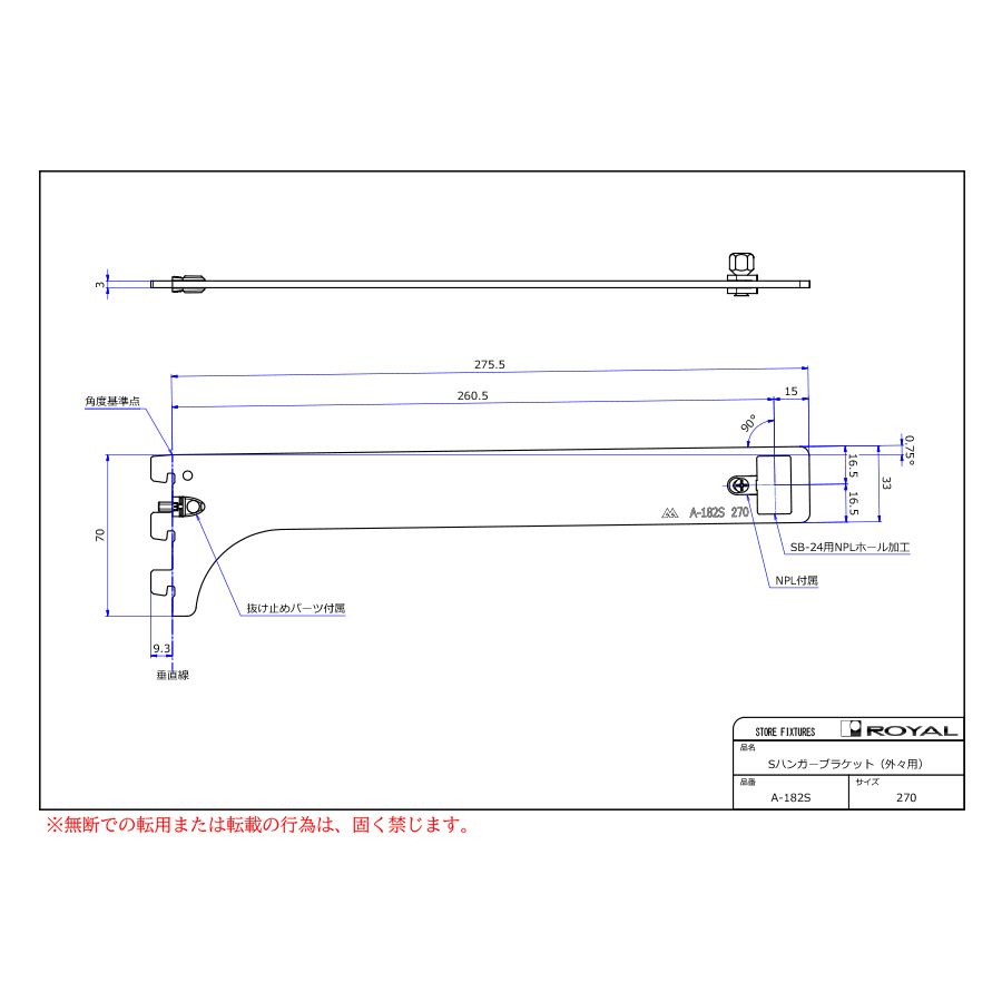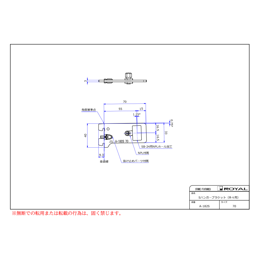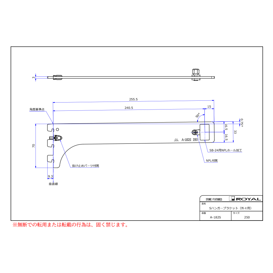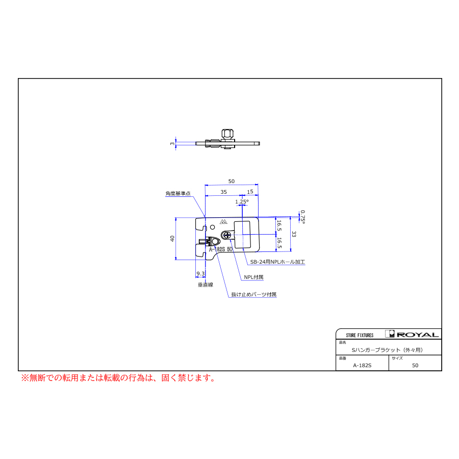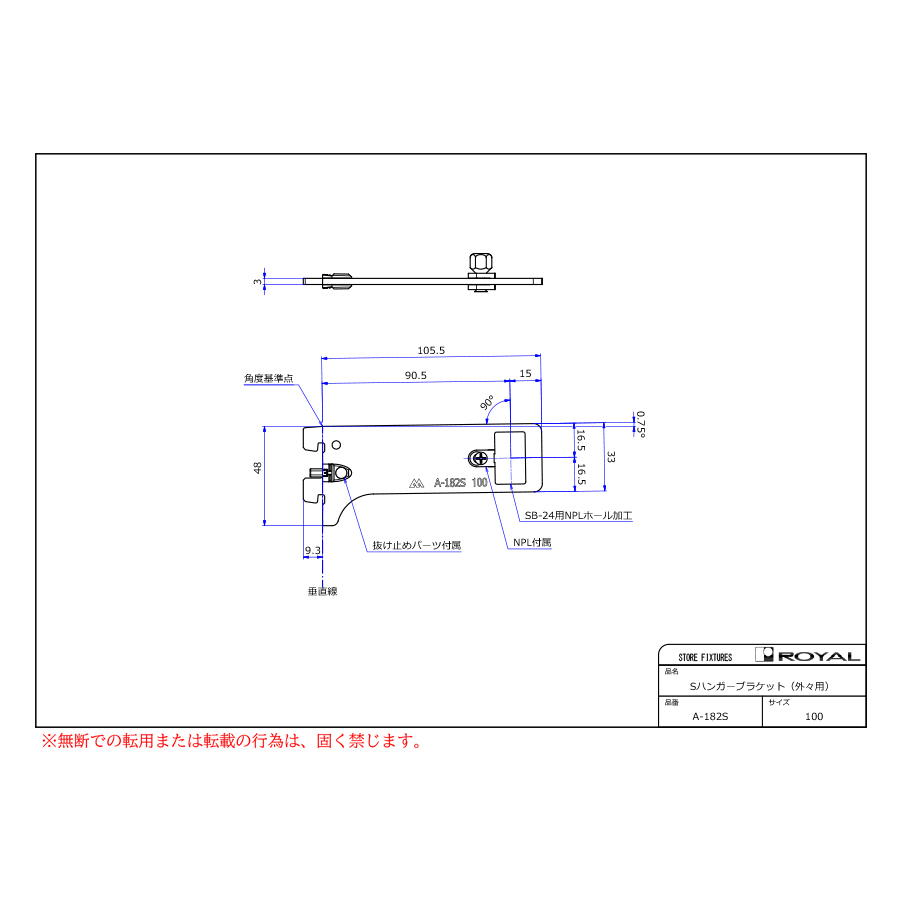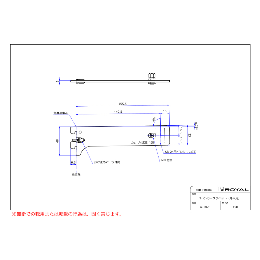 ●呼び名100からは、ブラケット装着時、無負荷状態では0.75°UPしております。(但し、t=2.0の棚柱のみ)