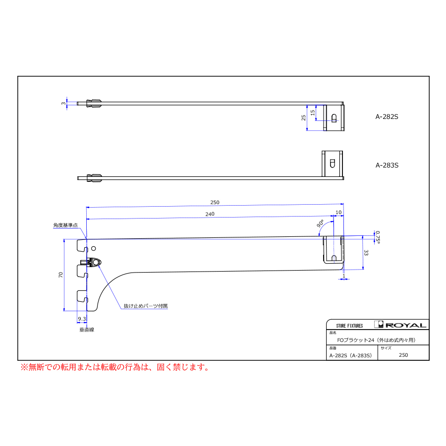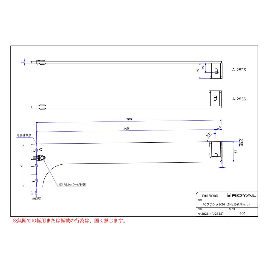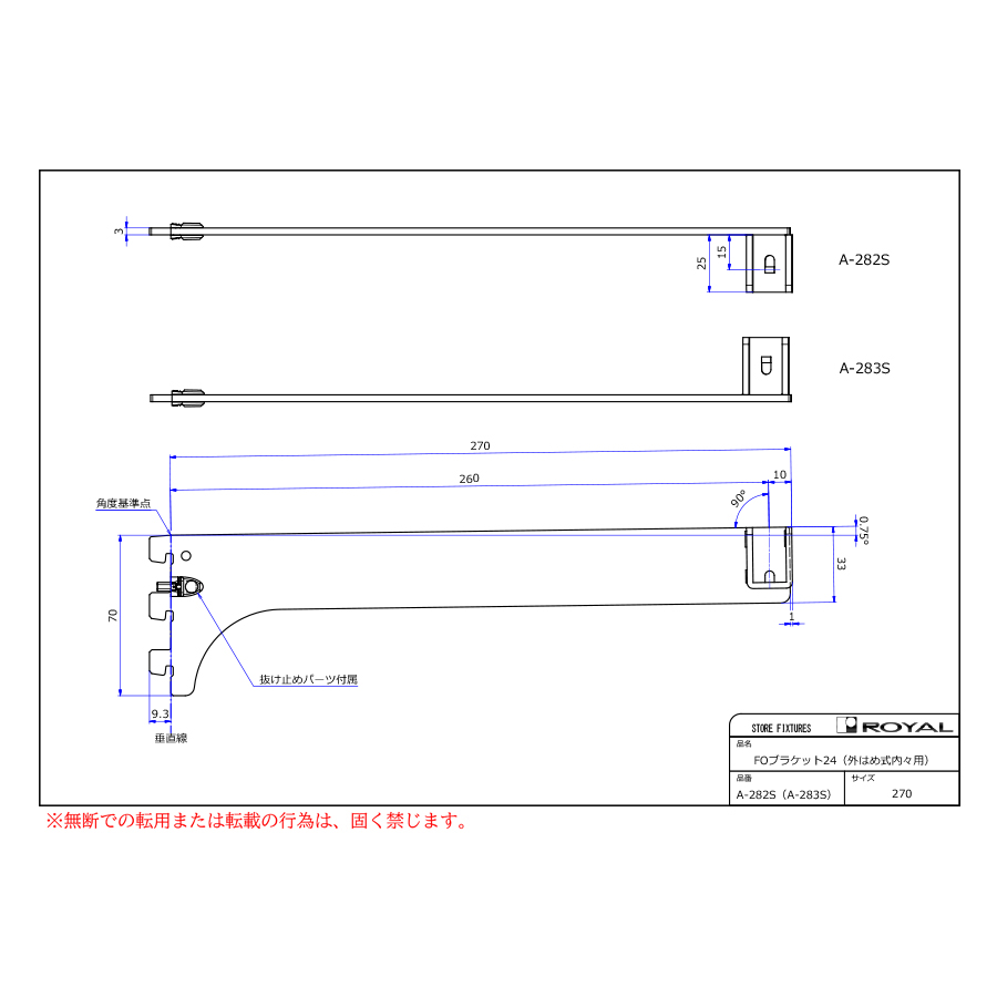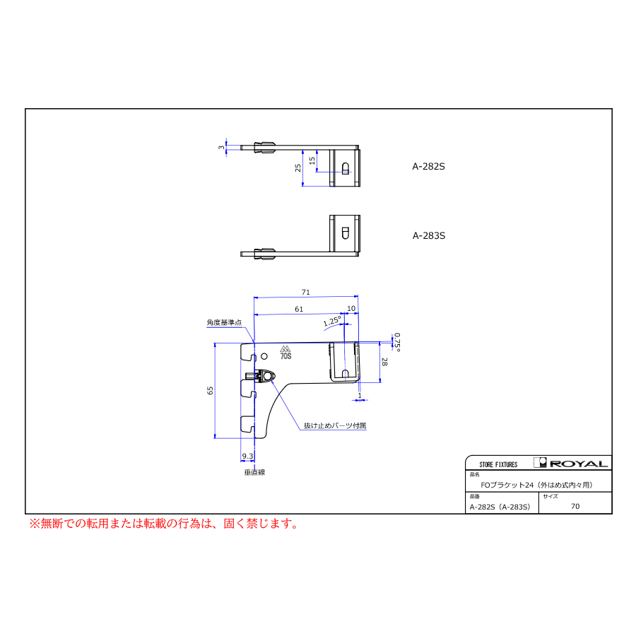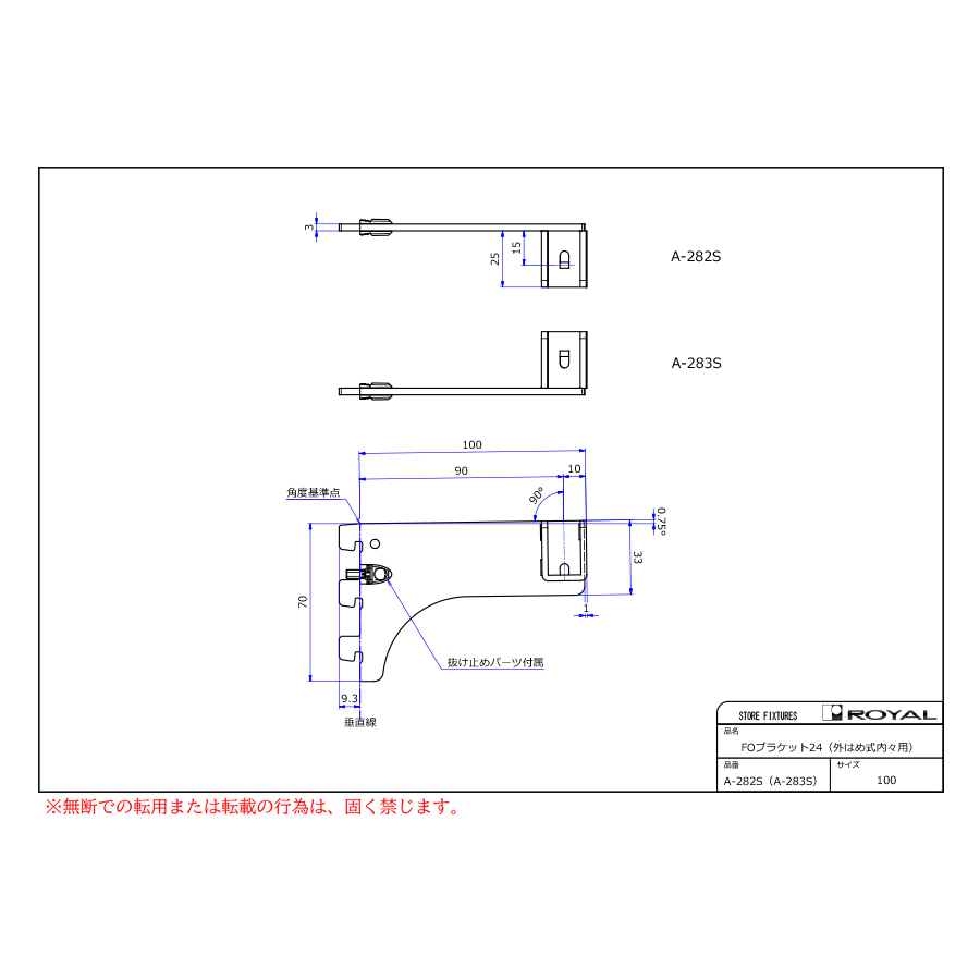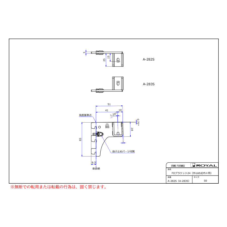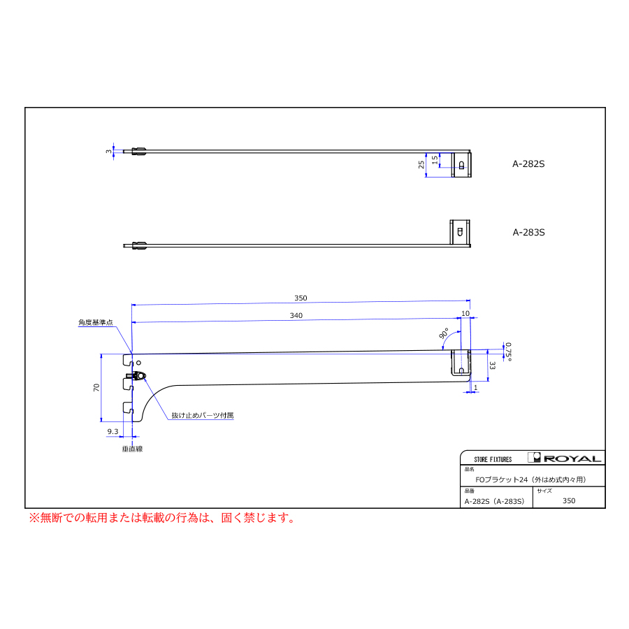 ●呼び名100からは、ブラケット装着時、無負荷状態では0.75°UPしております。(但し、t=2.0の棚柱のみ)