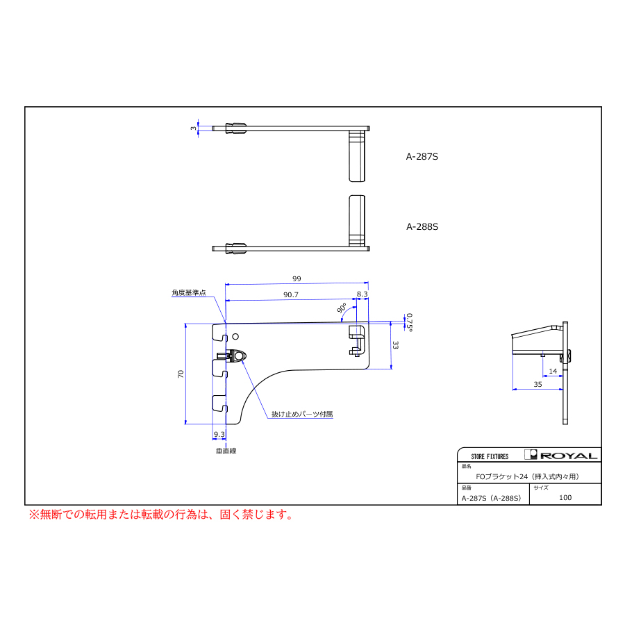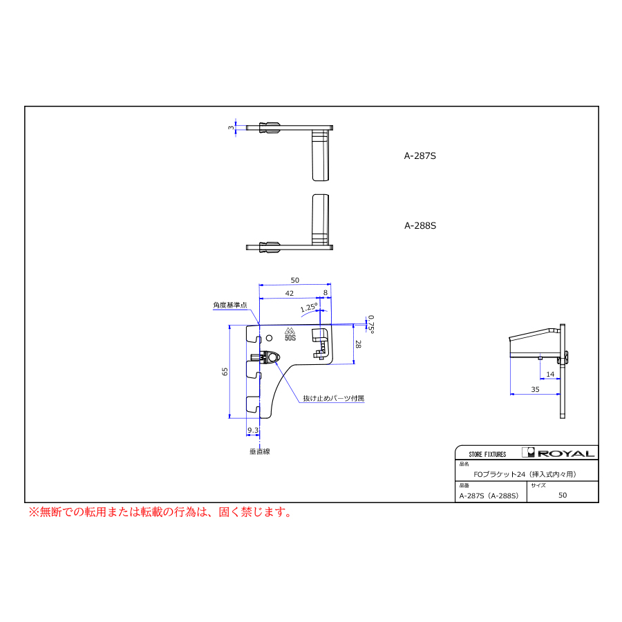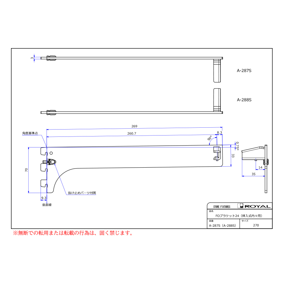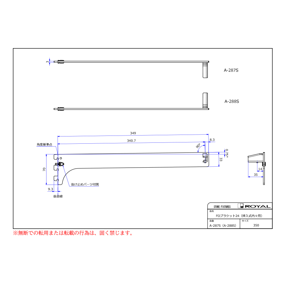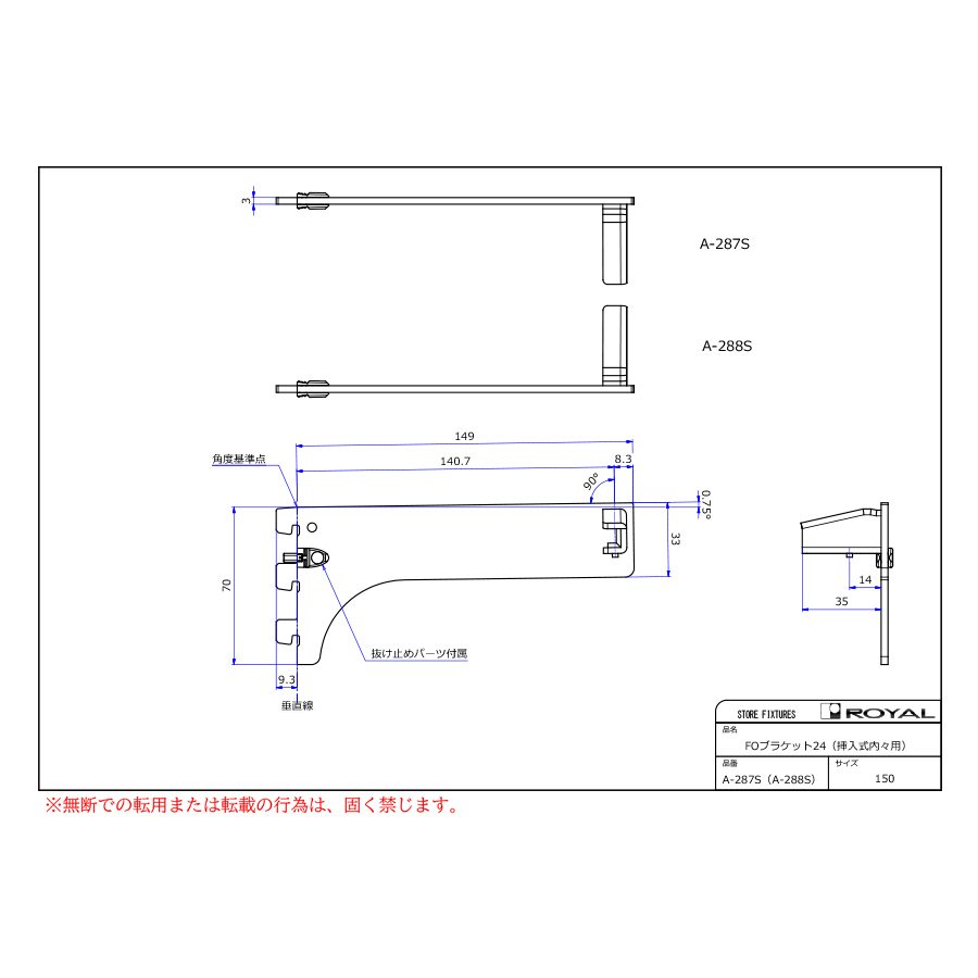 ●呼び名100からは、ブラケット装着時、無負荷状態では0.75°UPしております。(但し、t=2.0の棚柱のみ)