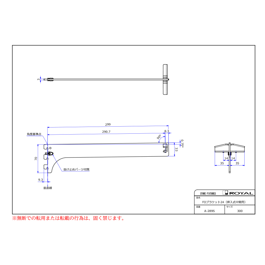 ●呼び名100からは、ブラケット装着時、無負荷状態では0.75°UPしております。(但し、t=2.0の棚柱のみ)