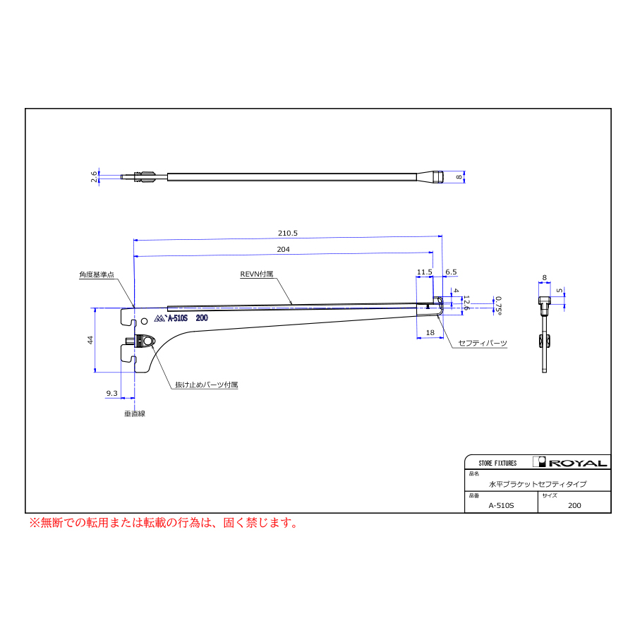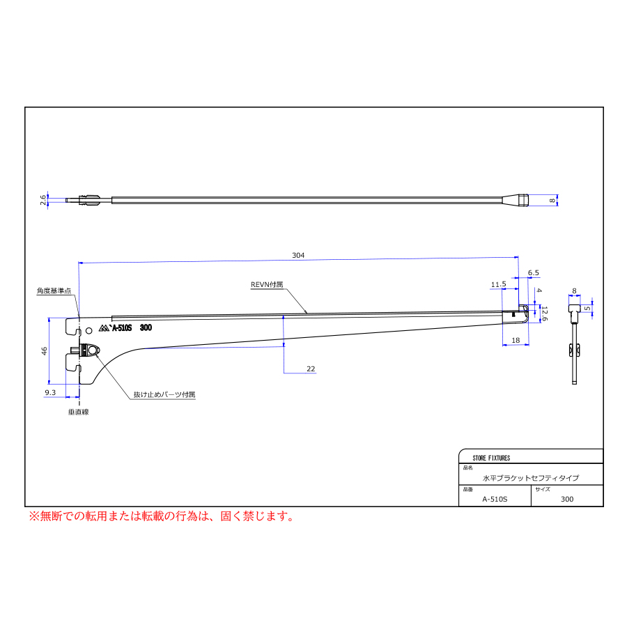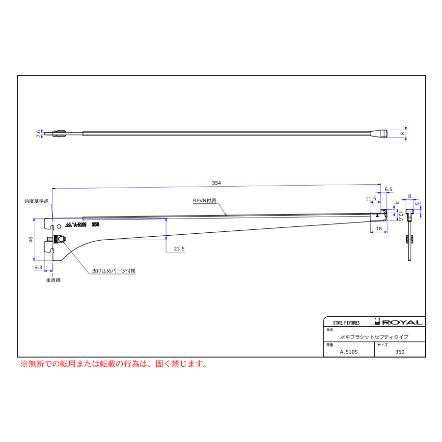 ●ブラケット装着時、無負荷状態では0.75°UPしております。(但し、t=2.0の棚柱のみ)