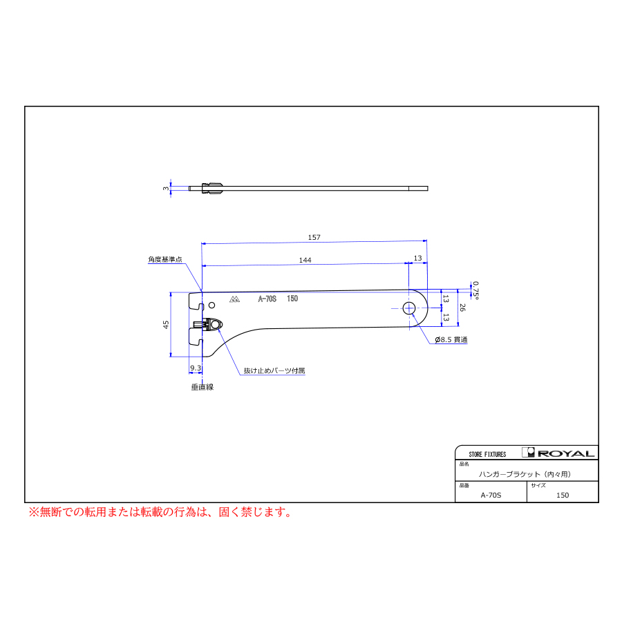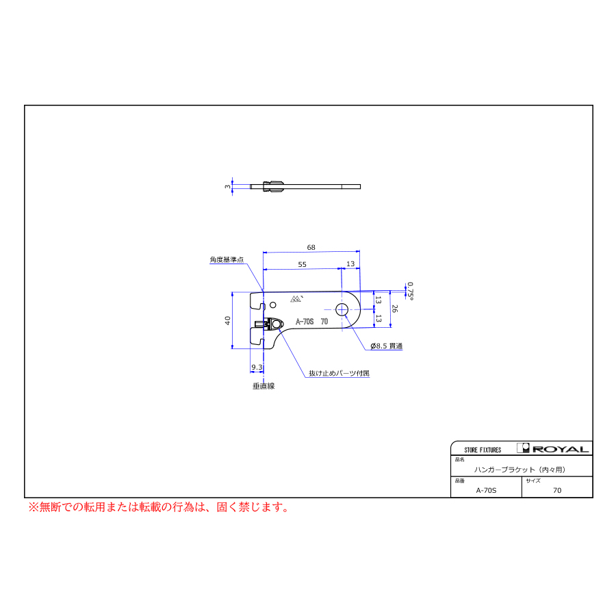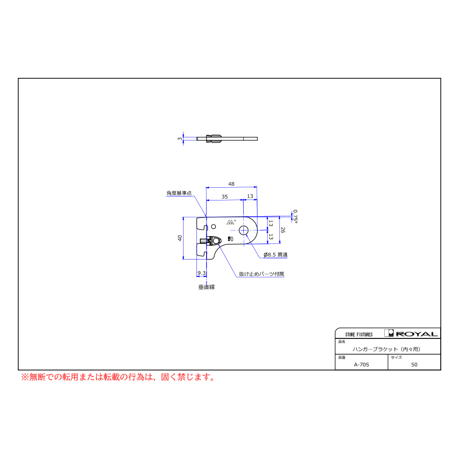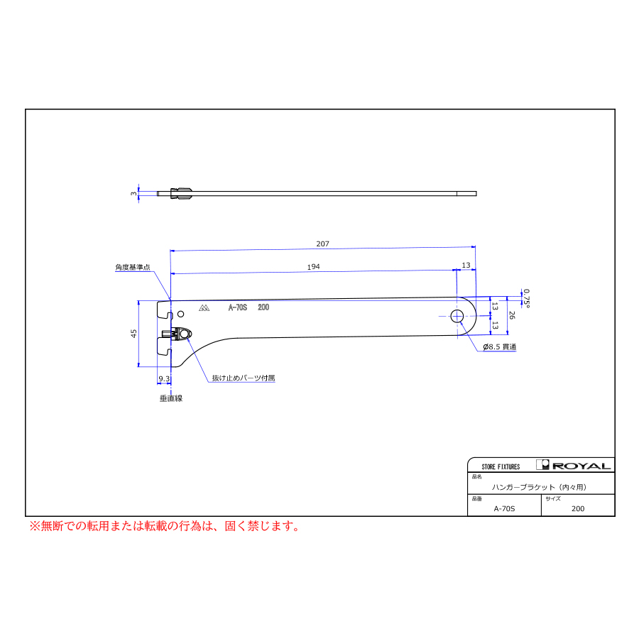 ●ブラケット装着時、無負荷状態では0.75°UPしております。(但し、t=2.0の棚柱のみ)