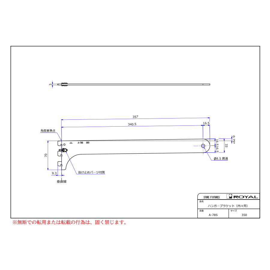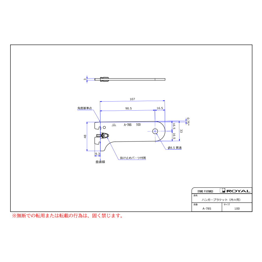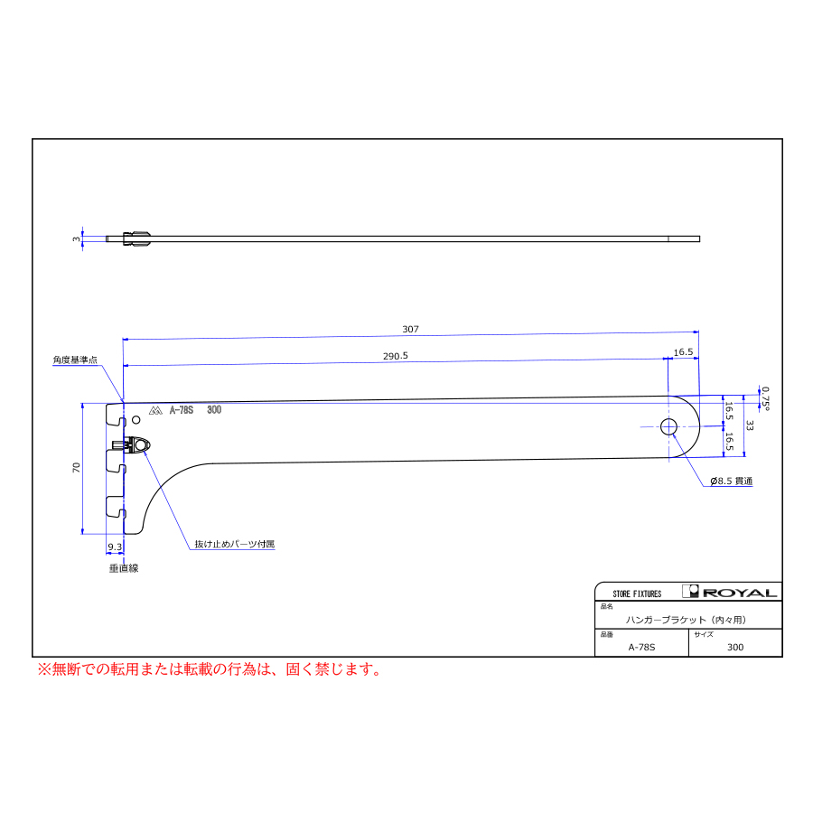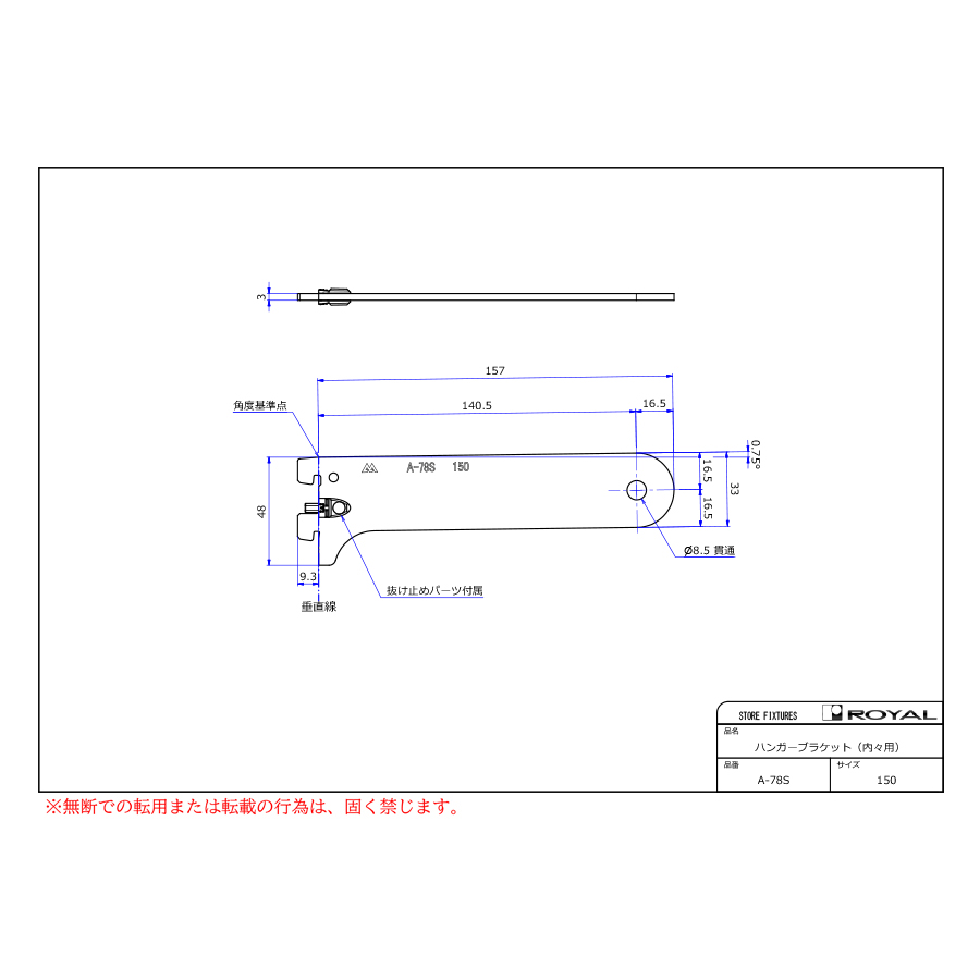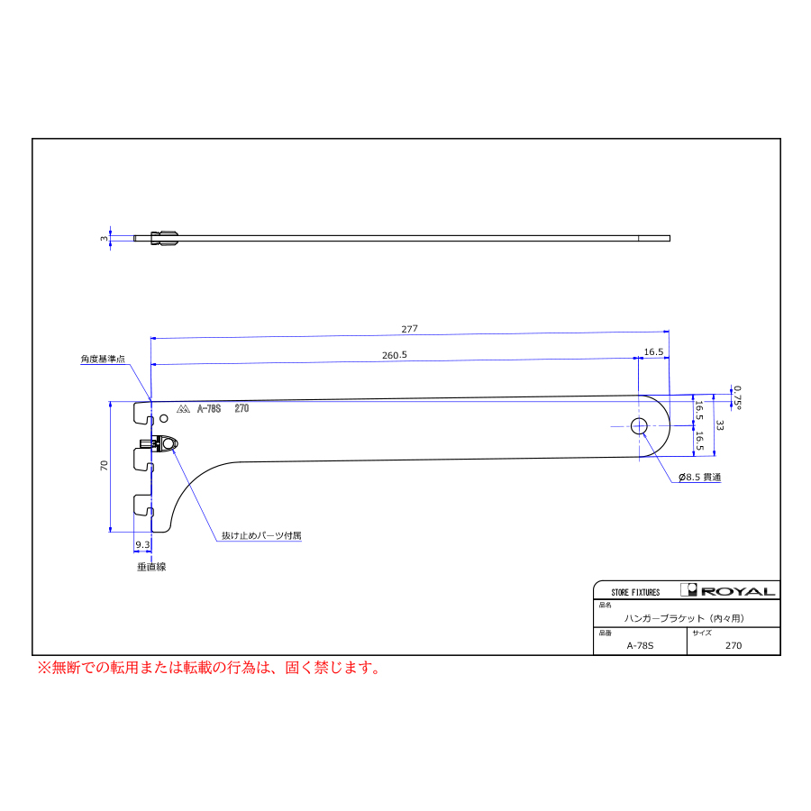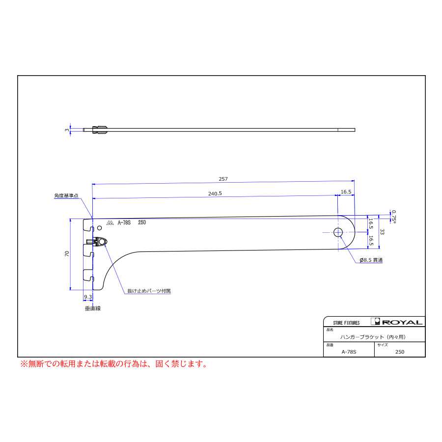 ●ブラケット装着時、無負荷状態では0.75°UPしております。(但し、t=2.0の棚柱のみ)