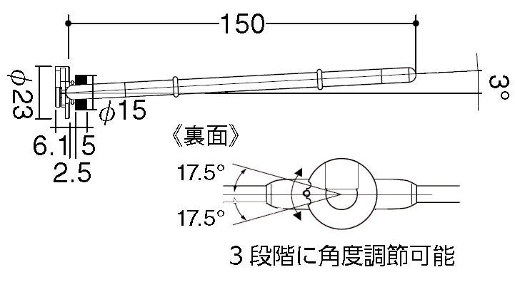 ※本体角度変更時は、固定用ローレットを必ずゆるめてから変更してください。