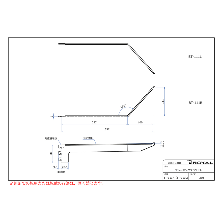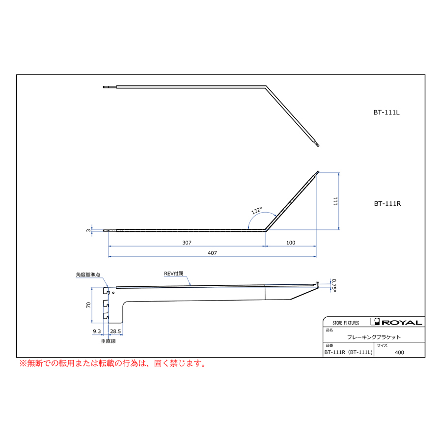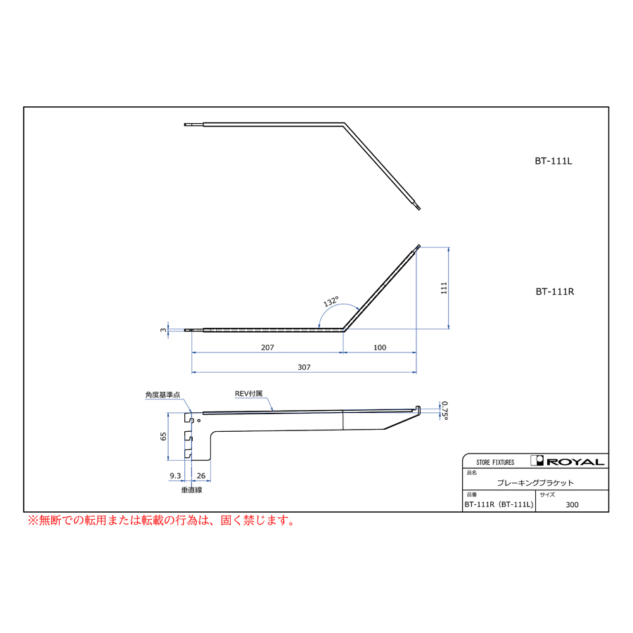 ●ブラケット装着時、無負荷状態では0.75°UPしております。(但し、t=2.0の棚柱のみ)