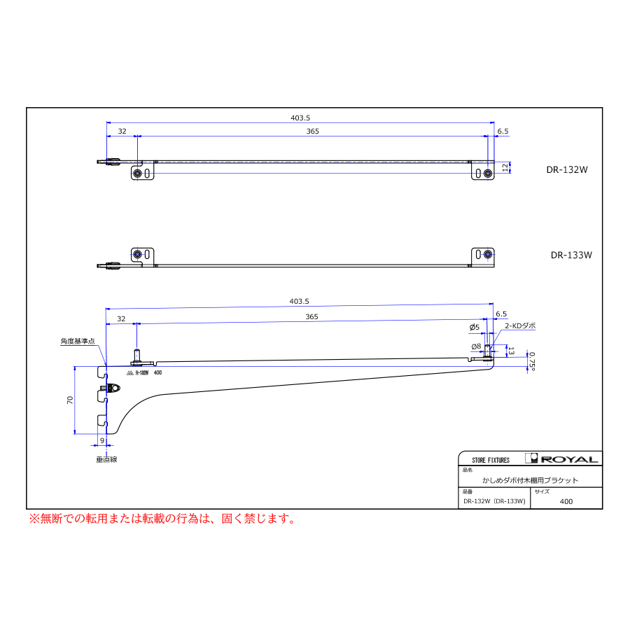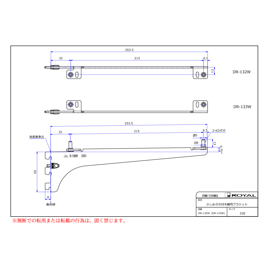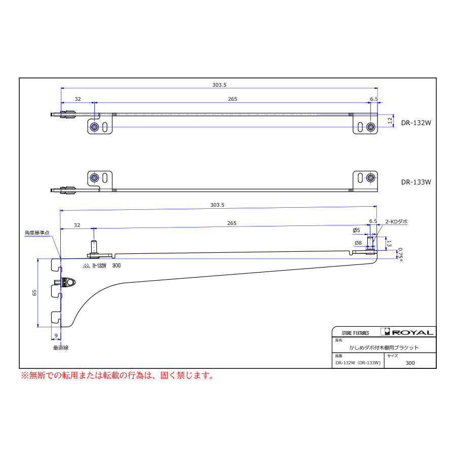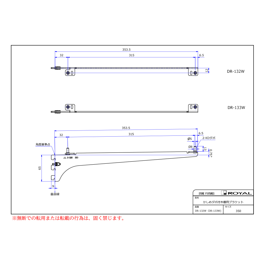 DR-133Wかしめダボ付木棚用ブラケット2300