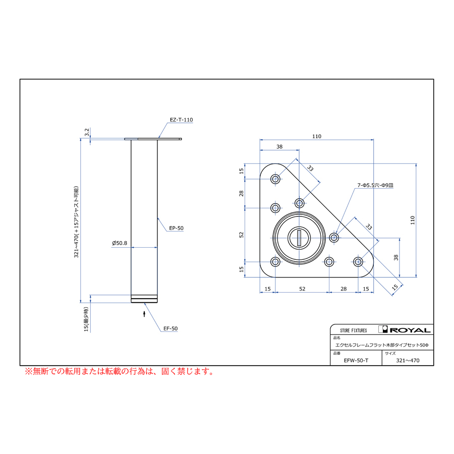 EFW-50-Tエクセルフレームフラット木部タイプセット50φ9280