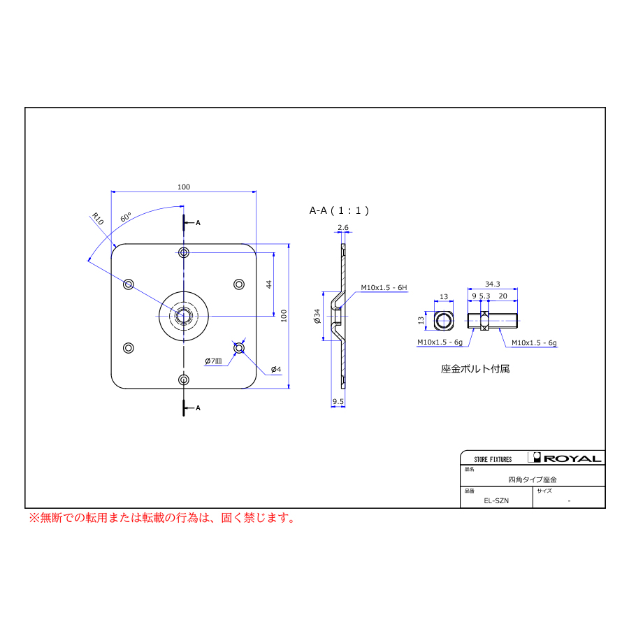 プロフィールhelp よくあるご質問 本体画像 エクセルレッグ ●材質:スチール ●厚みt=2.6mm ●ネジの呼び径:M10 ピッチ:1.5 ●適合タッピング:EL-AT-P(インデックス№9285 掲載) ●ビス穴6か所(7皿×Φ4穴) ●MA-EL-JB(エクセルレッグ連結用ボルト)付属 ●環境負荷物質(SOC10)が非含有(基準値以下) menu_book カタログビューで見る 寸法図 イメージ画像