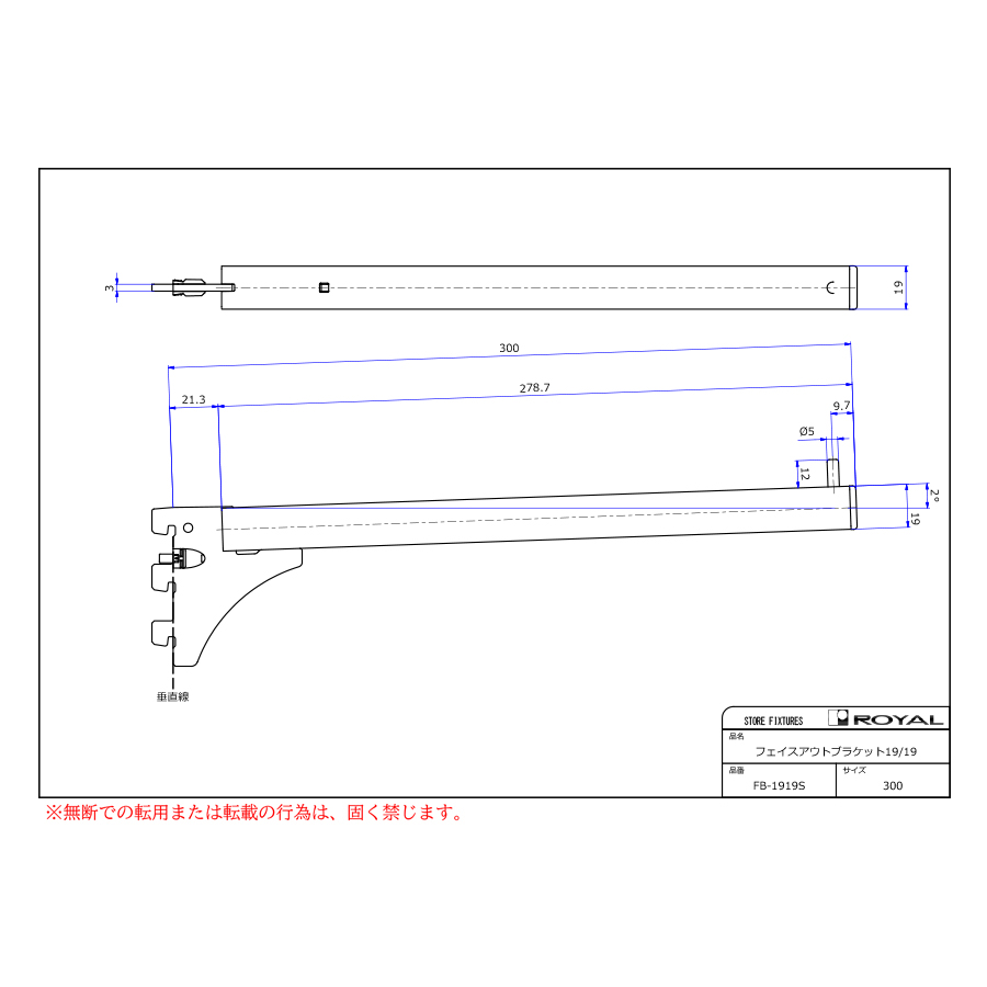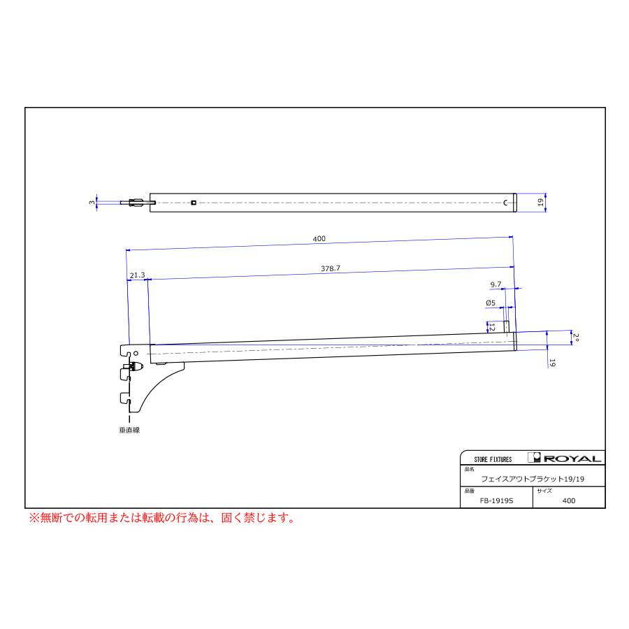 ●ブラケット装着時、無負荷状態では2°UPしております。(但し、t=2.0の棚柱のみ)
