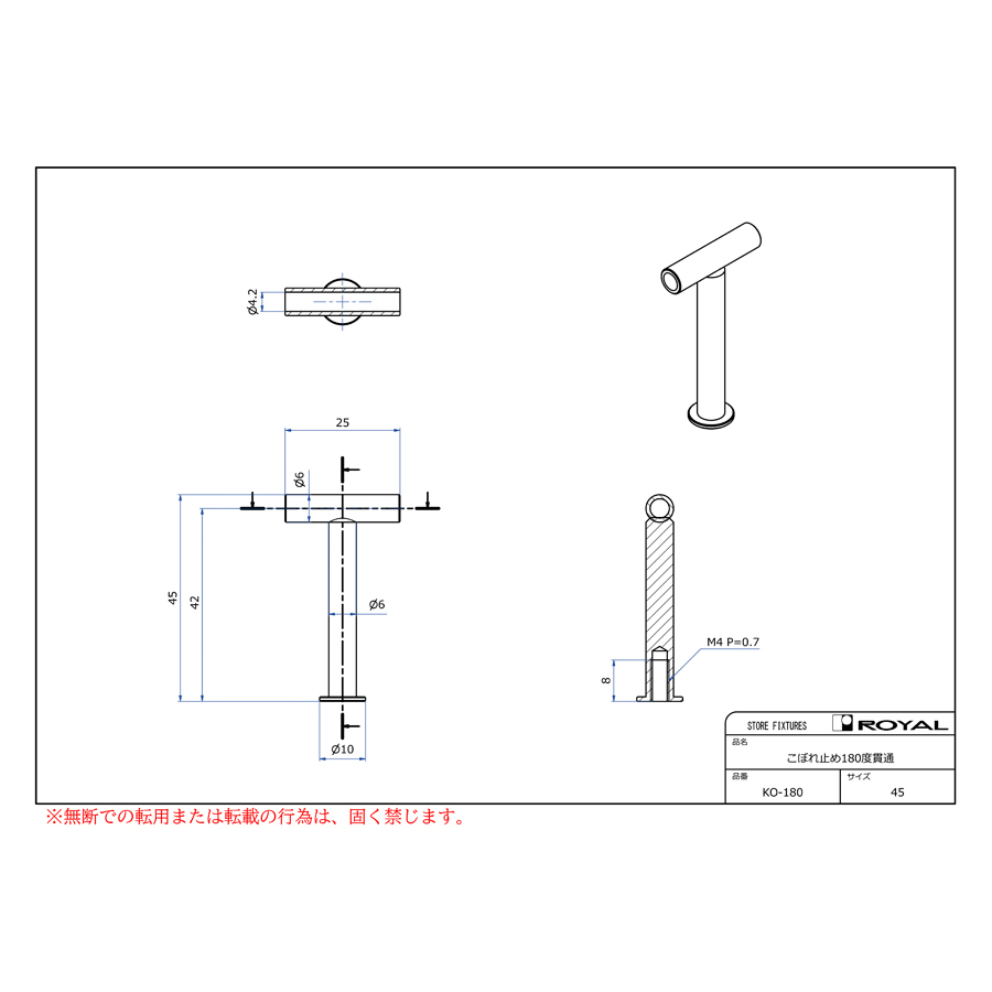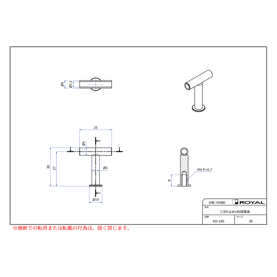 KO-180こぼれ止め180°貫通2400