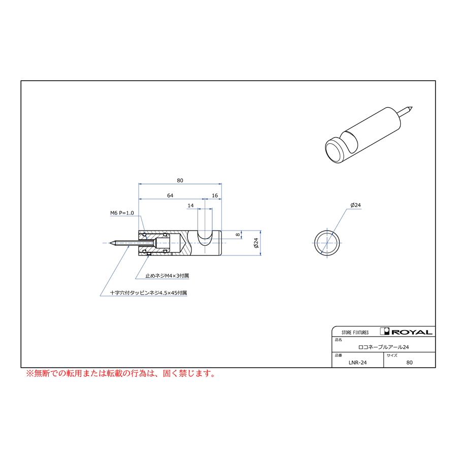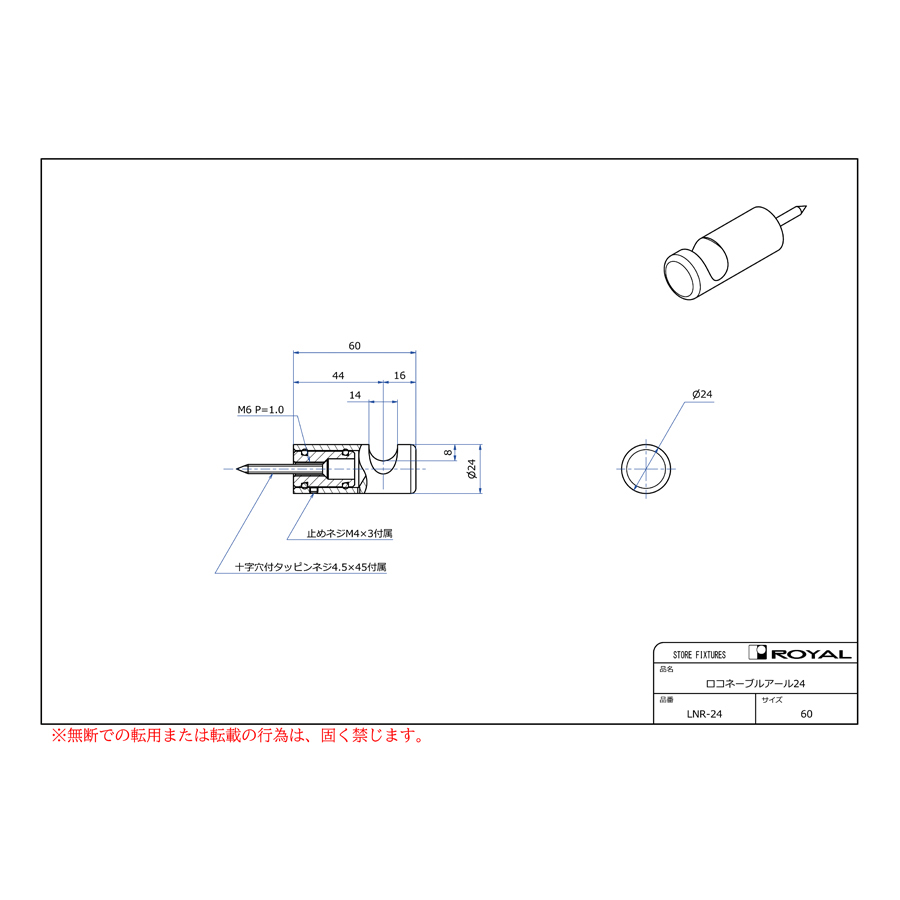 - ※付属ビスは軸径4.5φ×45mmとなります