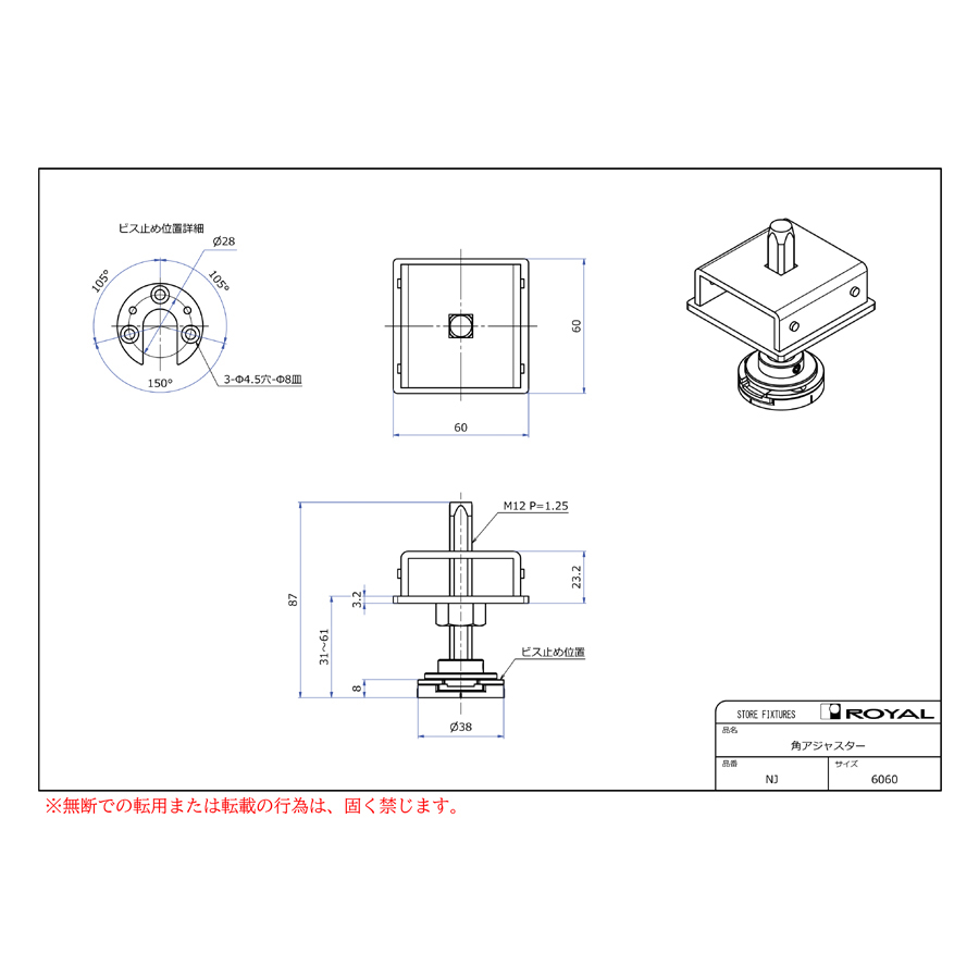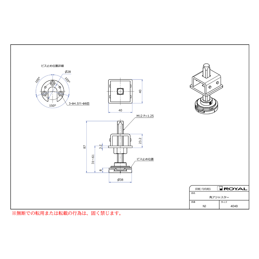 ●適合タッピング:AT-P(木下地用)またはFT-P(コンクリート用φ3下穴必要)をご使用ください。