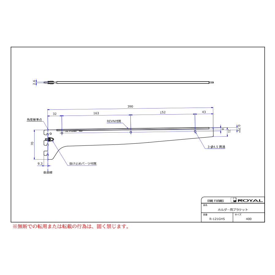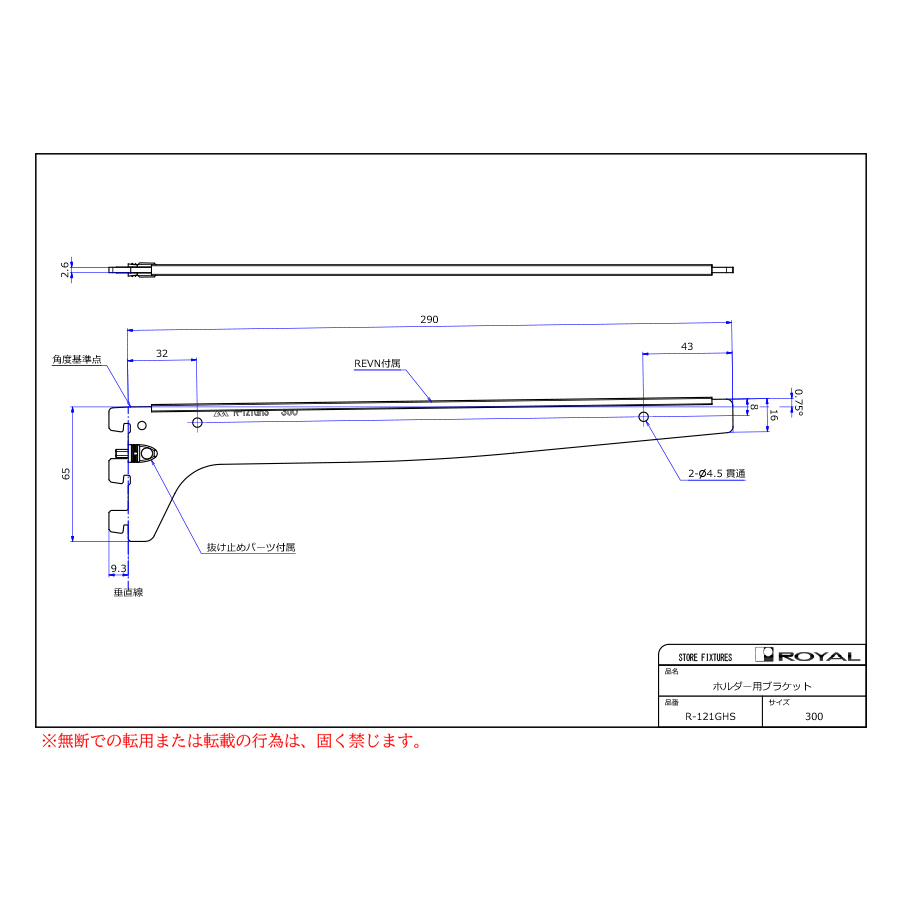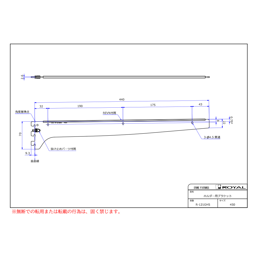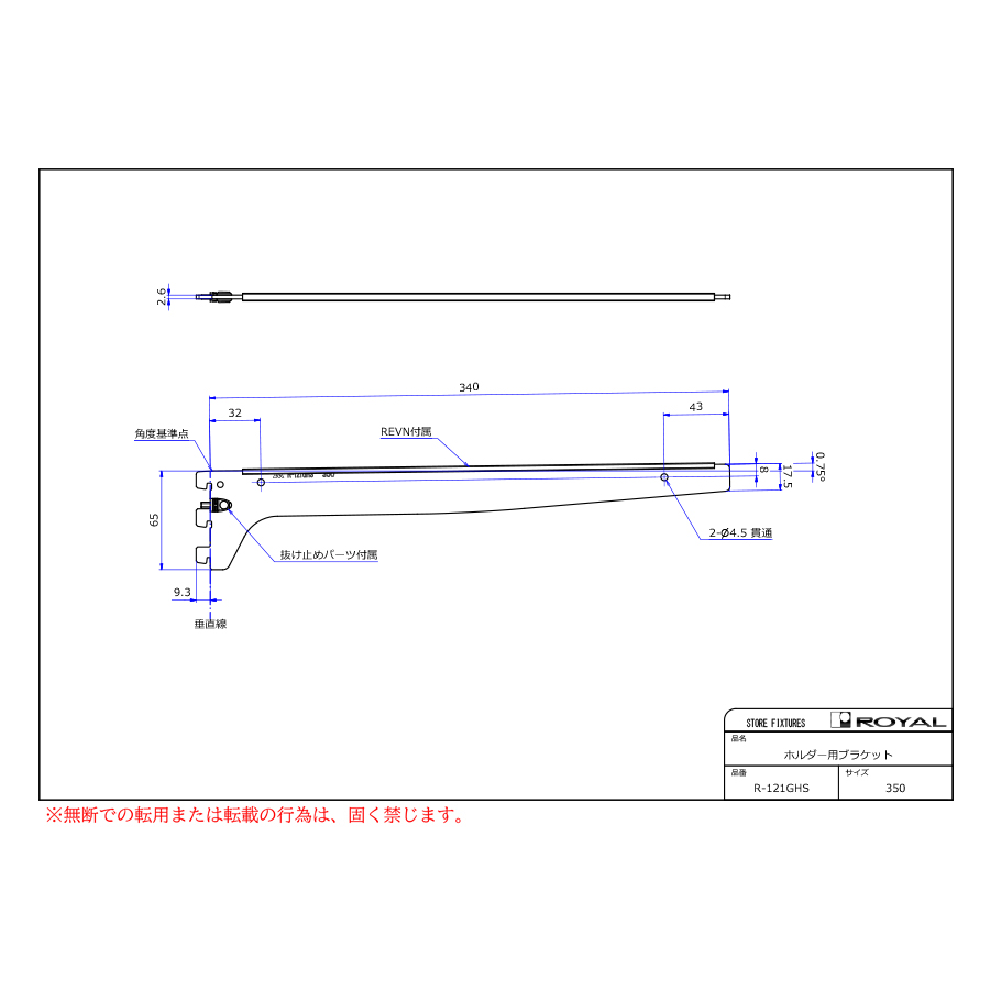 ●ブラケット装着時、無負荷状態では0.75°UPしております。(但し、t=2.0の棚柱のみ)