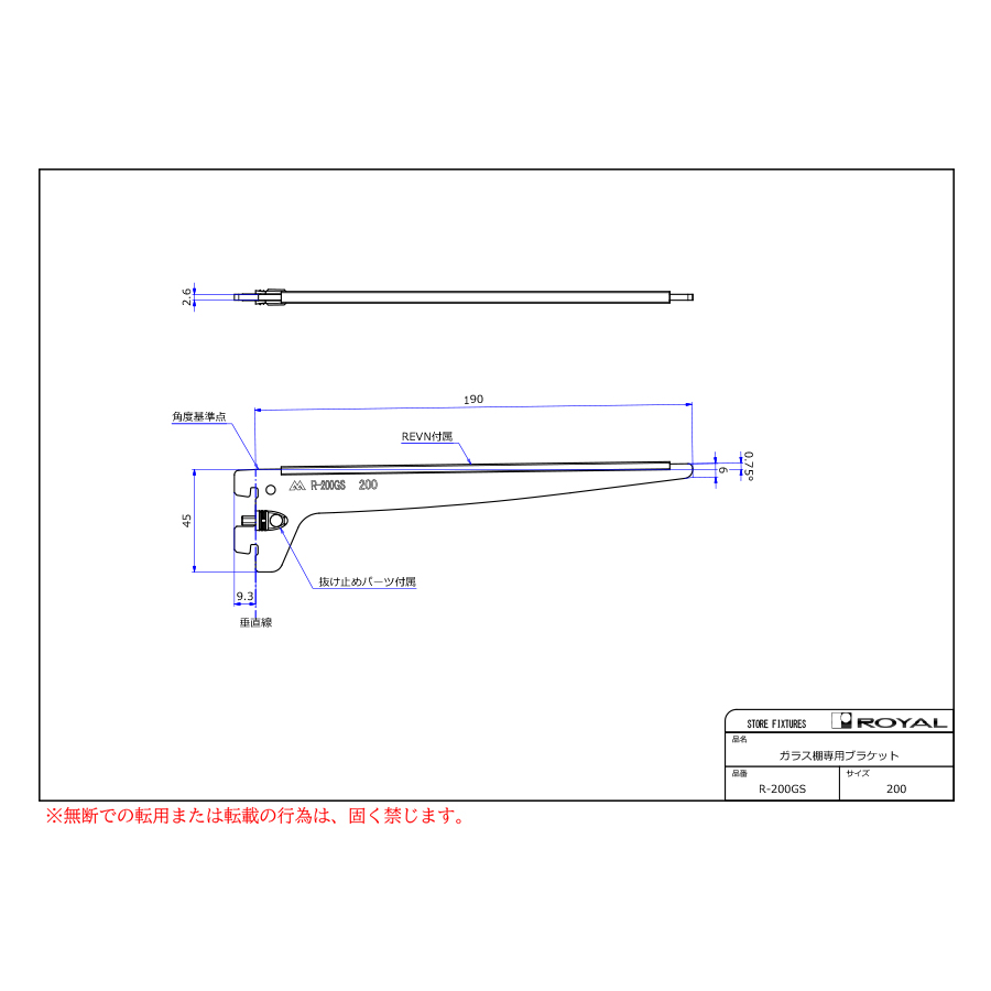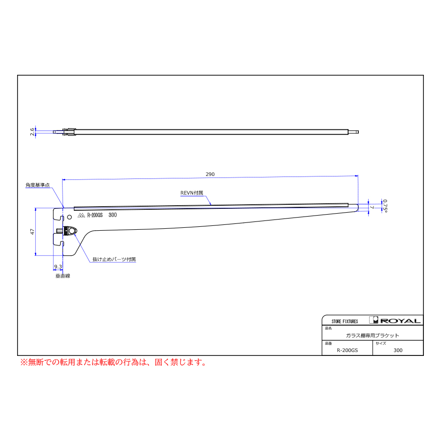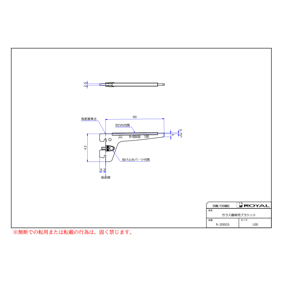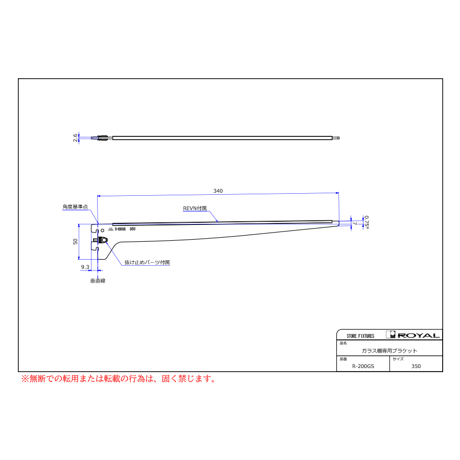 ●ブラケット装着時、無負荷状態では0.75°UPしております。(但し、t=2.0の棚柱のみ)