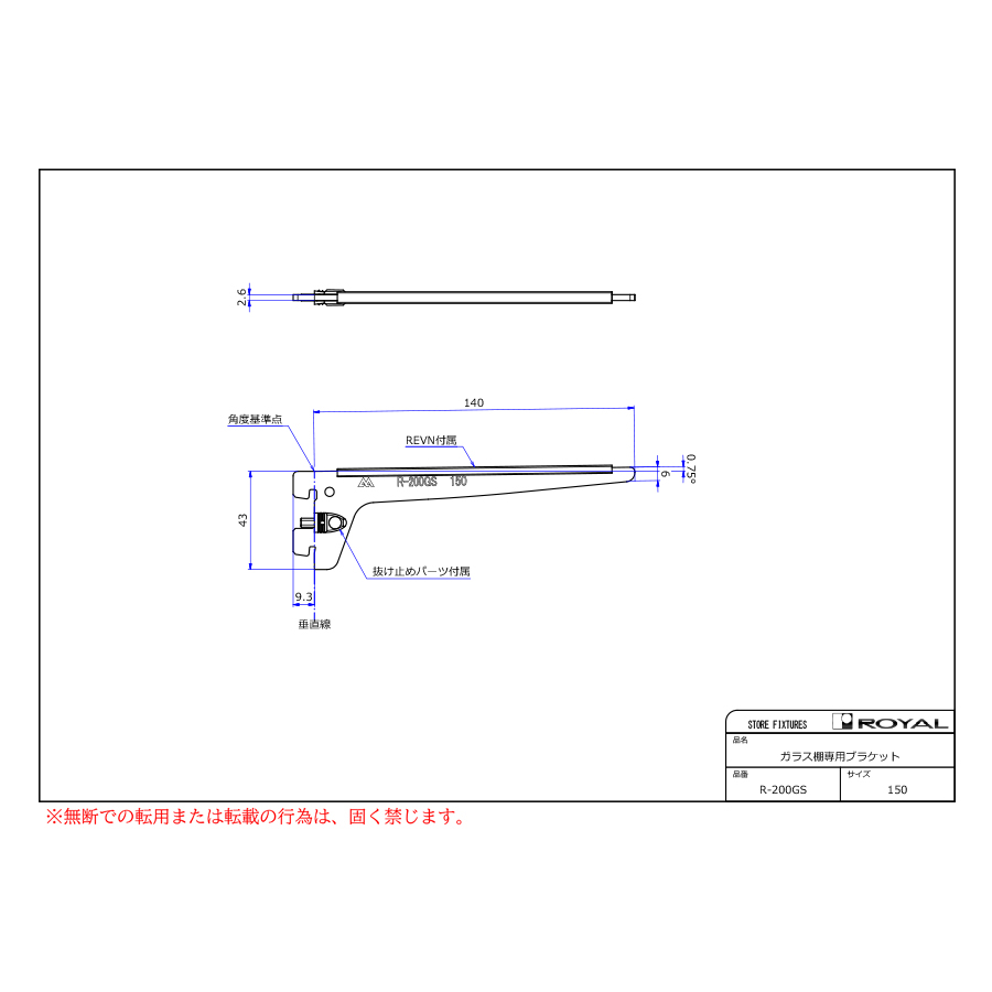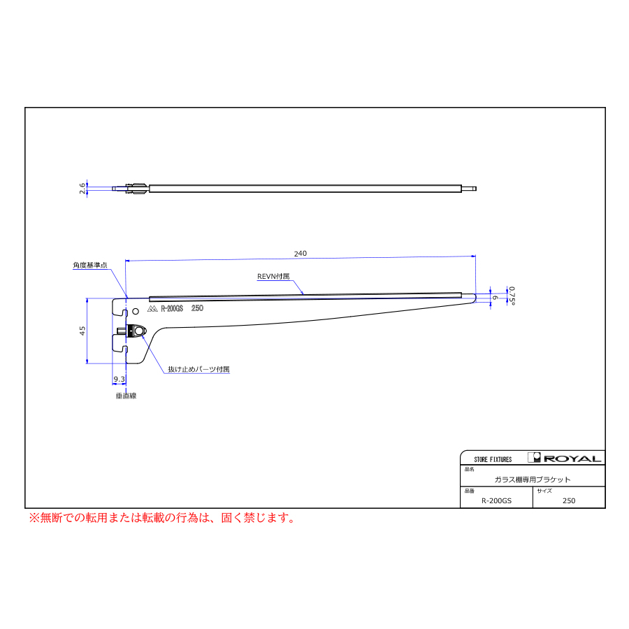 ガラス棚板専用水平ブラケット(Rタイプ)