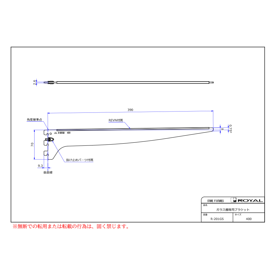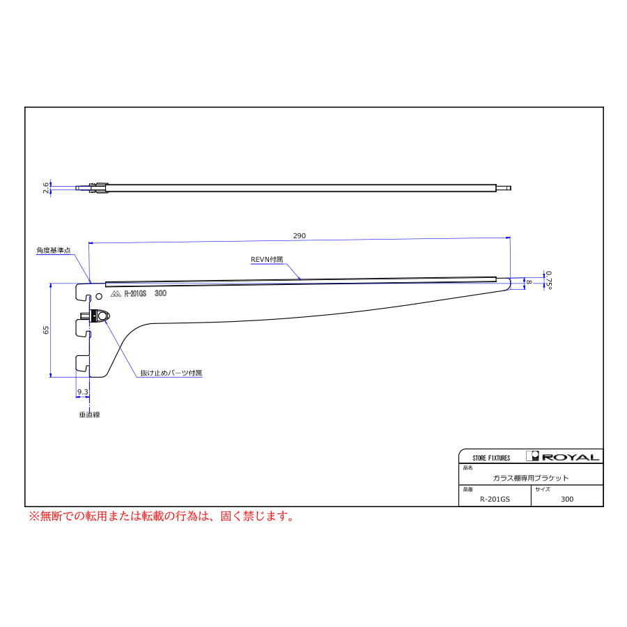 ガラス棚板専用水平ブラケット(Rタイプ)