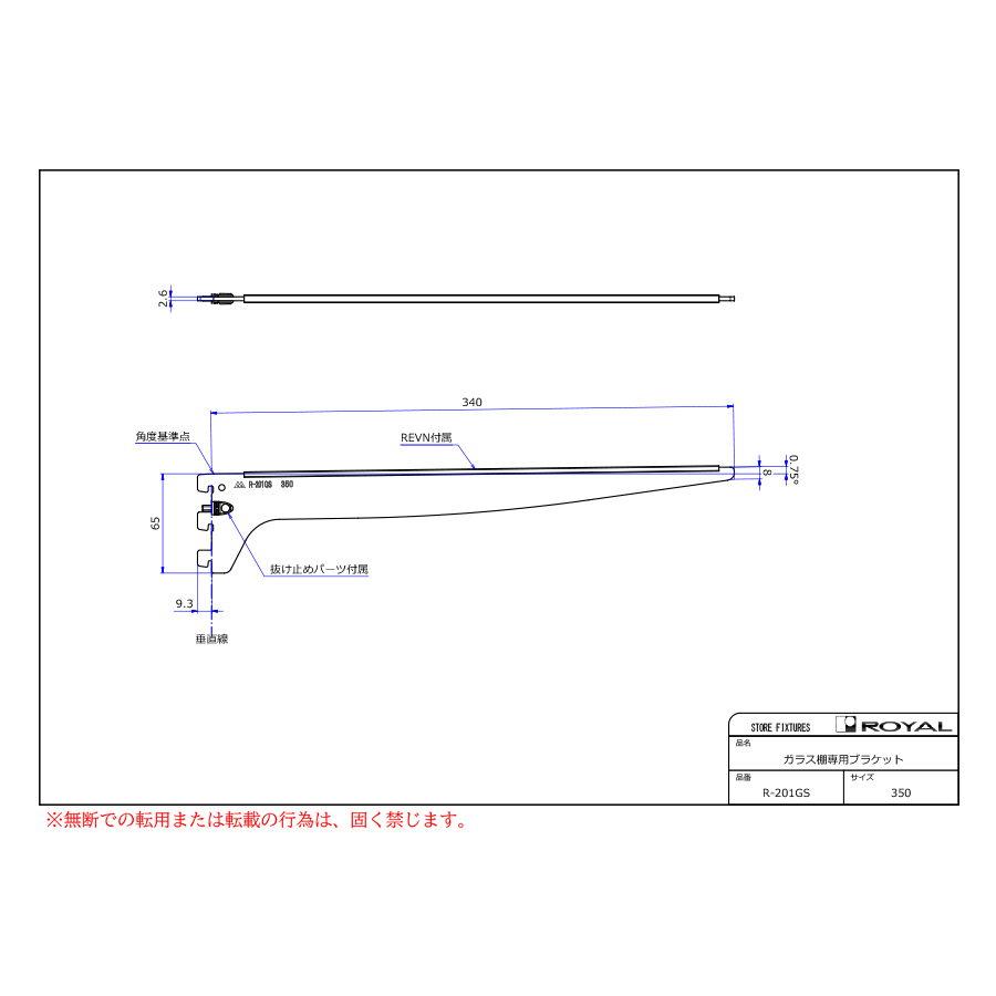 ●ブラケット装着時、無負荷状態では0.75°UPしております。(但し、t=2.0の棚柱のみ)