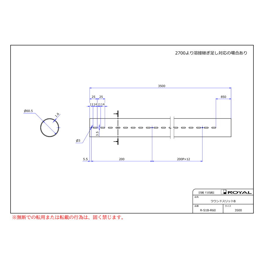 - L=2700mm以下のサイズは同サイズからの切断加工品となります。