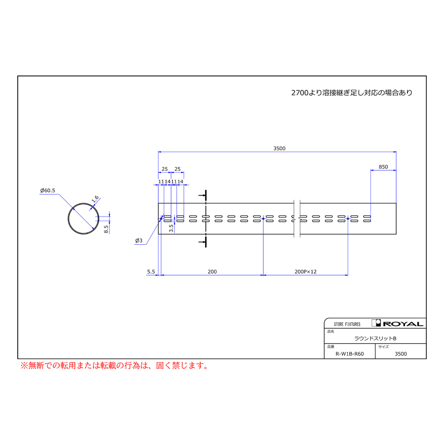 - L=2700mm以下のサイズは同サイズからの切断加工品となります。
