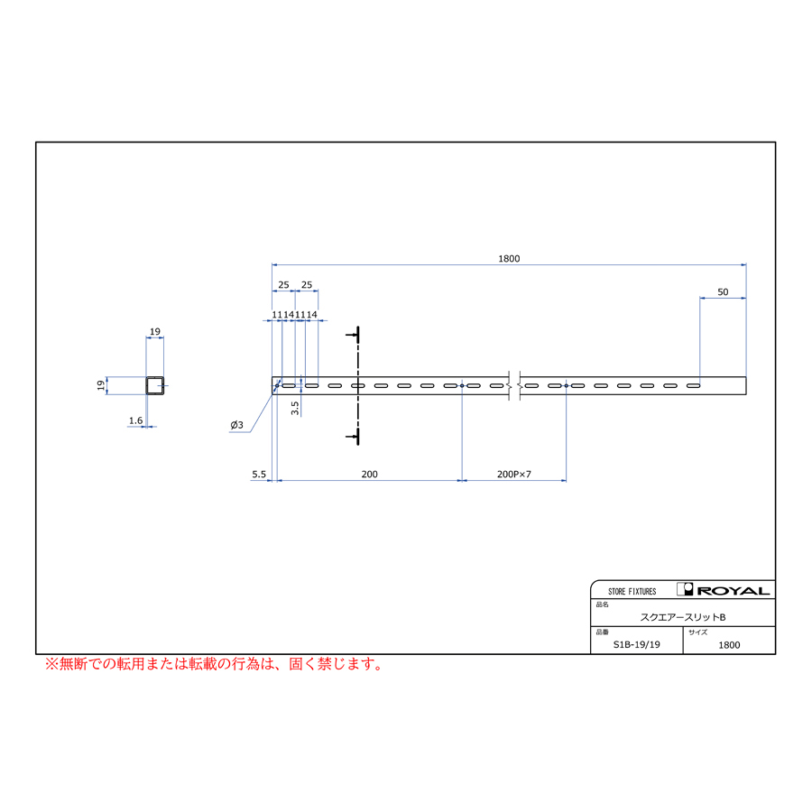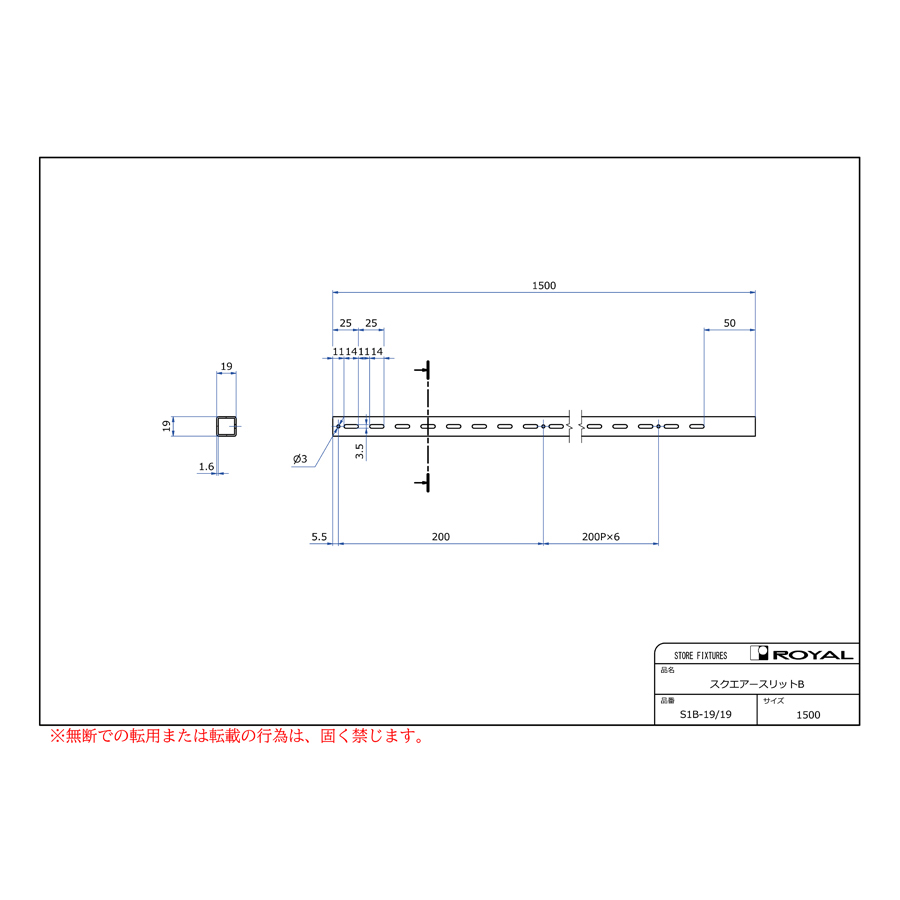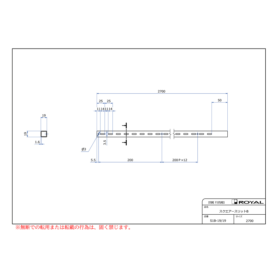 ●角パイプ寸法:19×19×1.6t