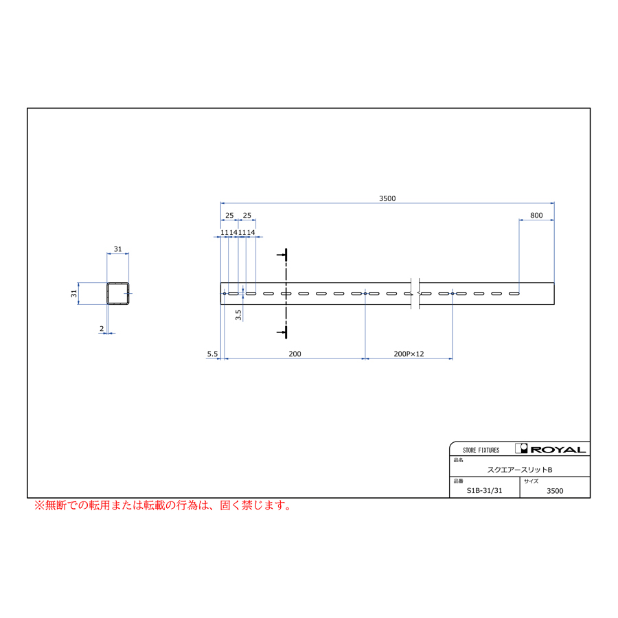●角パイプ寸法:31×31×2.0t