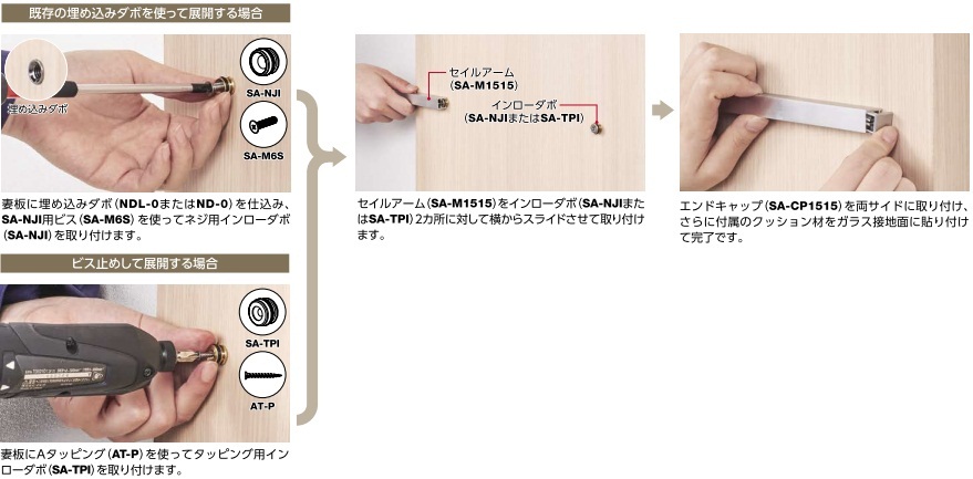 プロフィールhelp よくあるご質問 本体画像 セイルアーム ●販売単位:10個単位でご注文ください。(表記価格は1個あたりの定価になります) ●材質:真鍮挽き物 ●嵌合用Oリング付属 ●SA-M1515専用 ●この製品をご使用になる際は、AT-Pと組合せてご使用ください。 ●環境負荷物質(SOC10)が非含有(基準値以下) menu_book カタログビューで見る 施工説明書 施工説明書 発注の手引き 取り付け動画