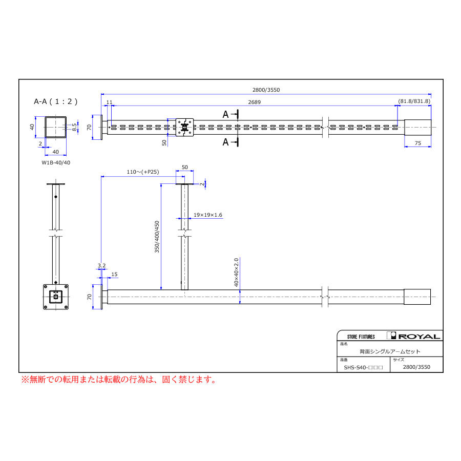 ●角パイプ寸法:40×40×2.0t