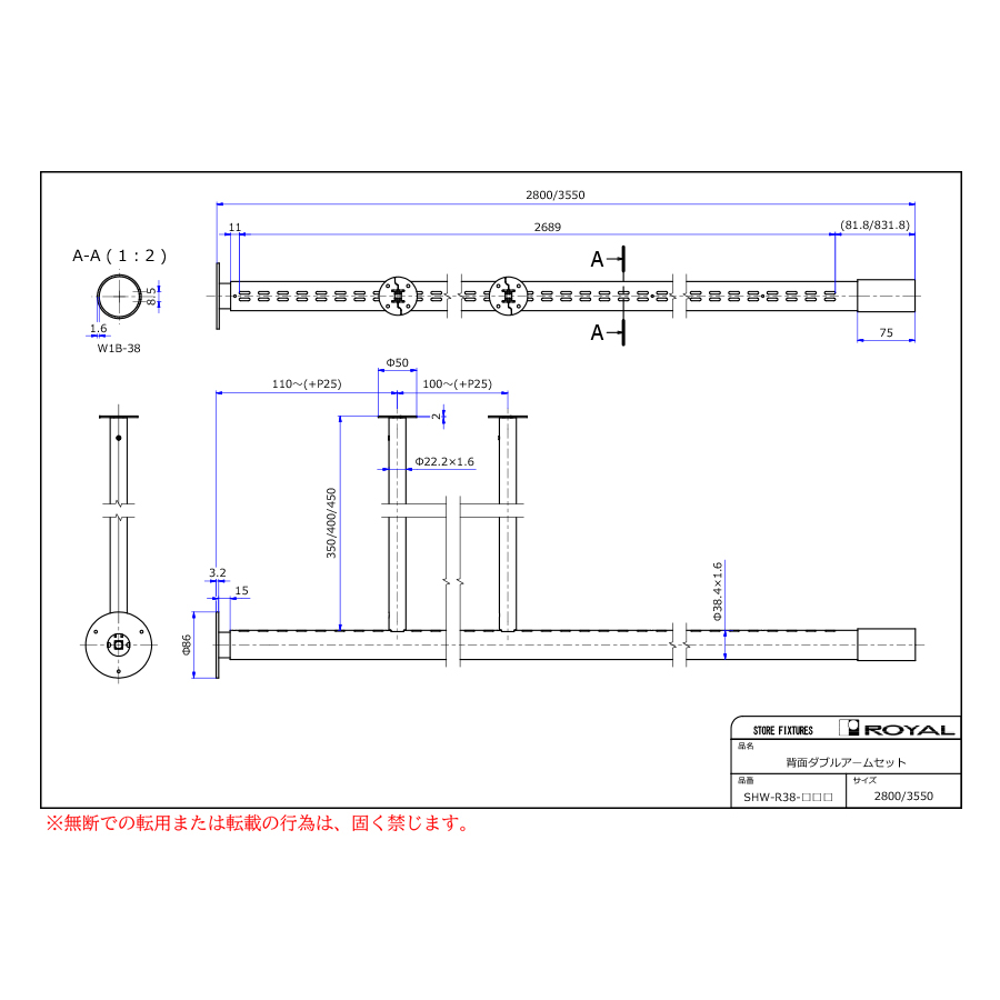 - ●パイプの肉厚が薄い為、ブラケットのアップ角度(0.75°)が確保できず、軽量用となります。