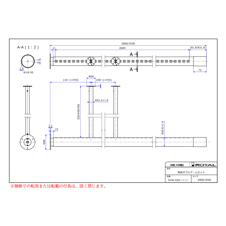 ●丸パイプ寸法:Φ50.8×1.9t