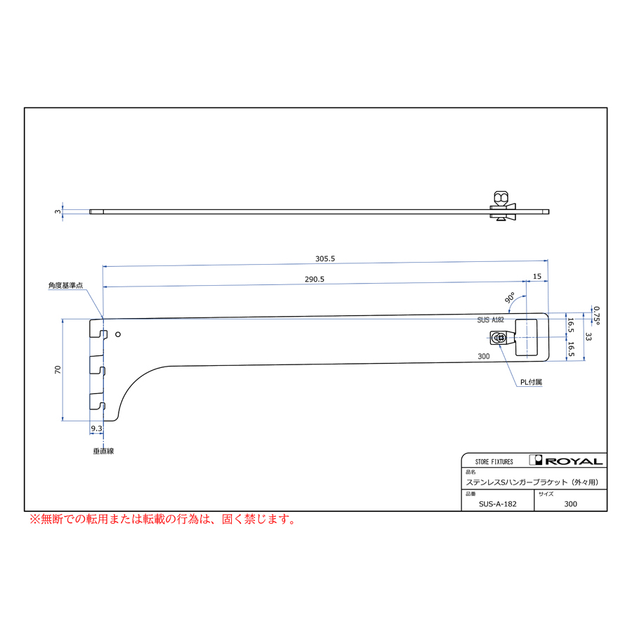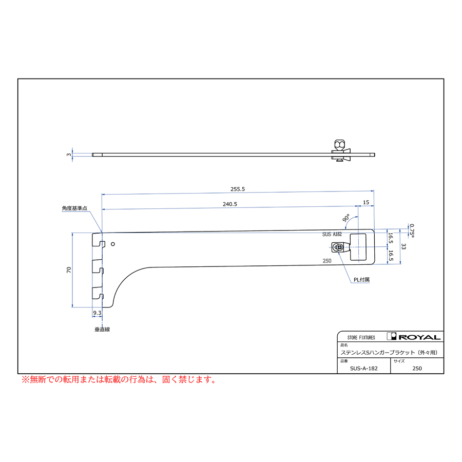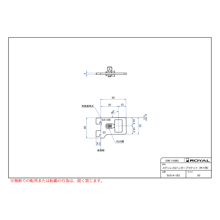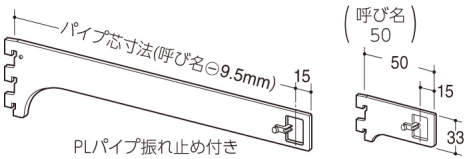●ブラケット装着時、無負荷状態では0.75°UPしております。(但し、t=2.0の棚柱のみ)
