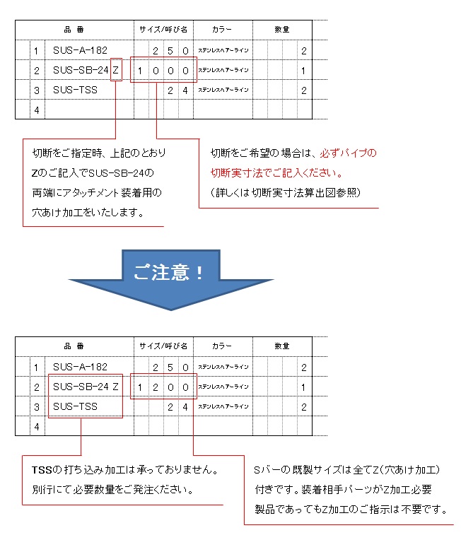 ●ブラケットにLK・TPL(爪側PL)加工された製品と同時にRKYはご使用になれません。