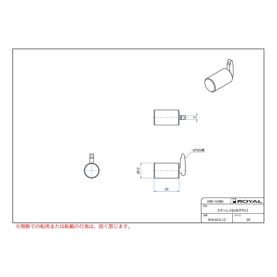 プロフィールhelp よくあるご質問 寸法図 ステンレスパイプソケット/ステンレス製ダボ柱及び柱ダボ ●販売単位:10個単位でご注文ください。(表記価格は1個あたりの定価になります) ●ネジの呼び径:M6 ピッチ:1.0 ●材質:ステンレス ●木棚専用 ●爪ボルト(6TS)付属 ●環境負荷物質(SOC10)が非含有(基準値以下) menu_book カタログビューで見る 発注の手引き