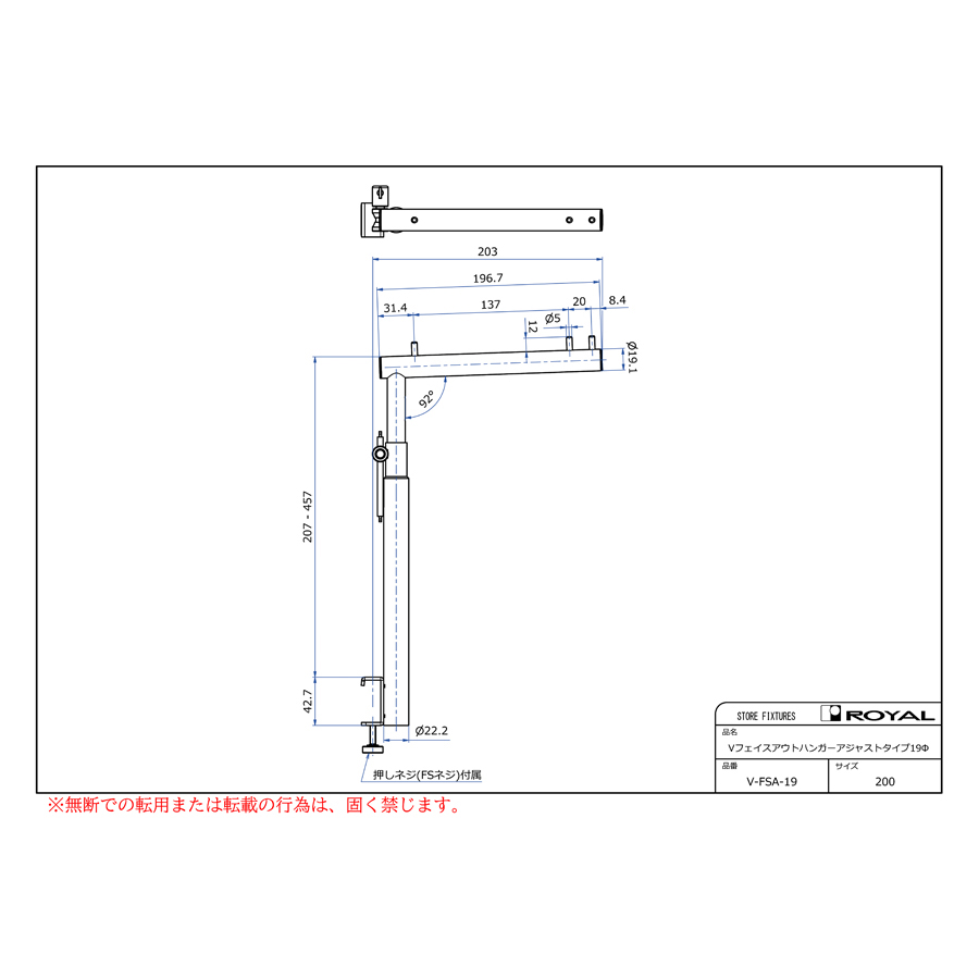 ●フェイスアウトハンガー装着時、無負荷状態では2°UPしております。(但し、本体部分のみ)