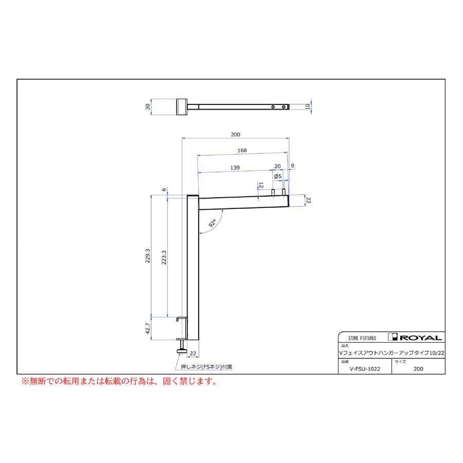 ●フェイスアウトハンガー装着時、無負荷状態では2°UPしております。(但し、本体部分のみ)