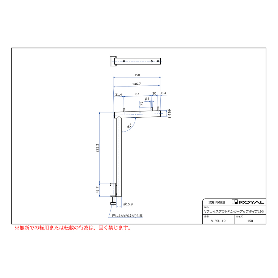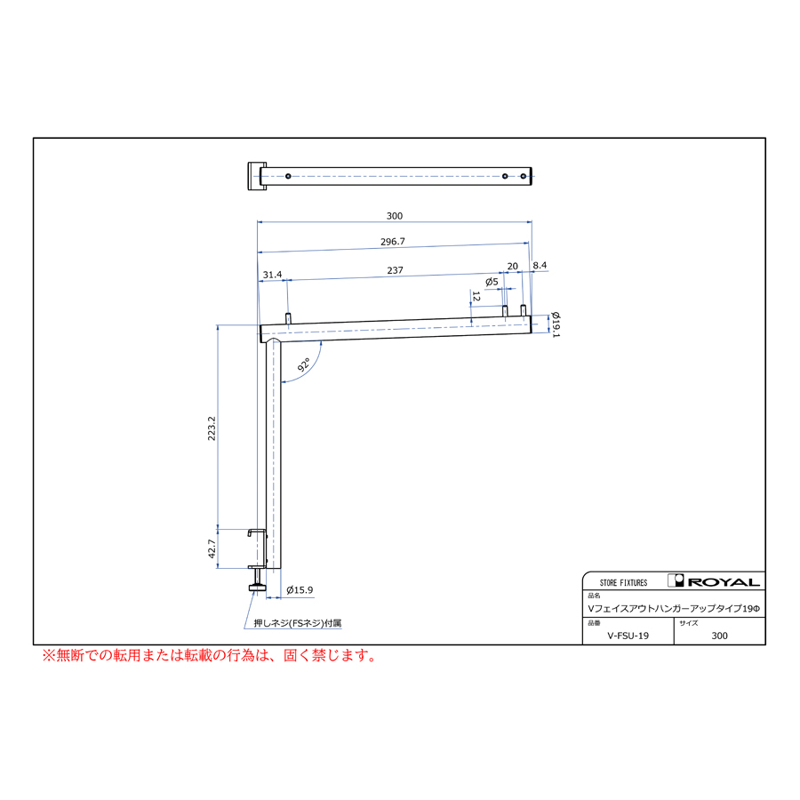 ●フェイスアウトハンガー装着時、無負荷状態では2°UPしております。(但し、本体部分のみ)