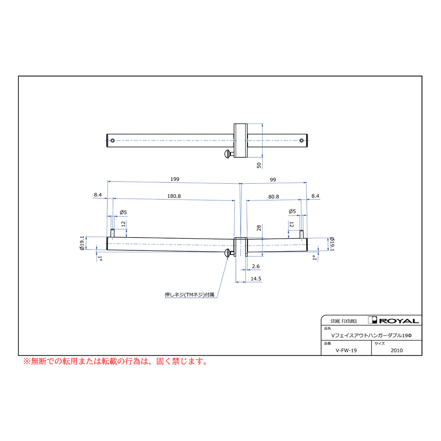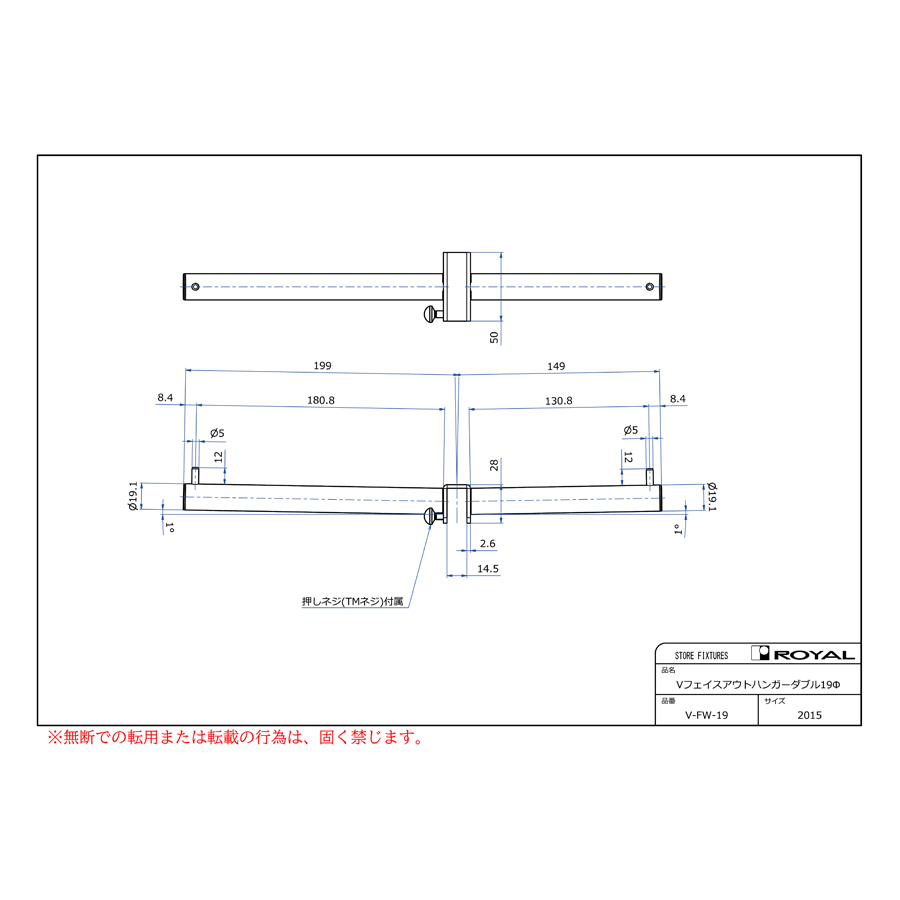 ●フェイスアウトハンガー装着時、無負荷状態では1°UPしております。(但し、本体部分のみ)
