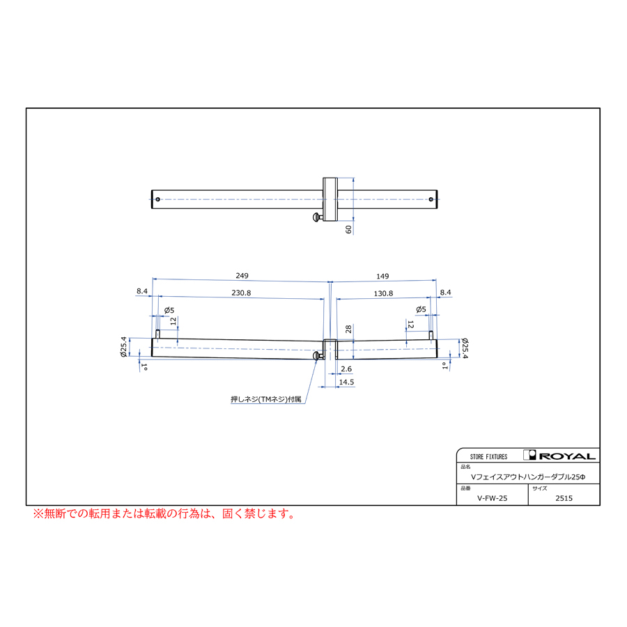 ●フェイスアウトハンガー装着時、無負荷状態では1°UPしております。(但し、本体部分のみ)
