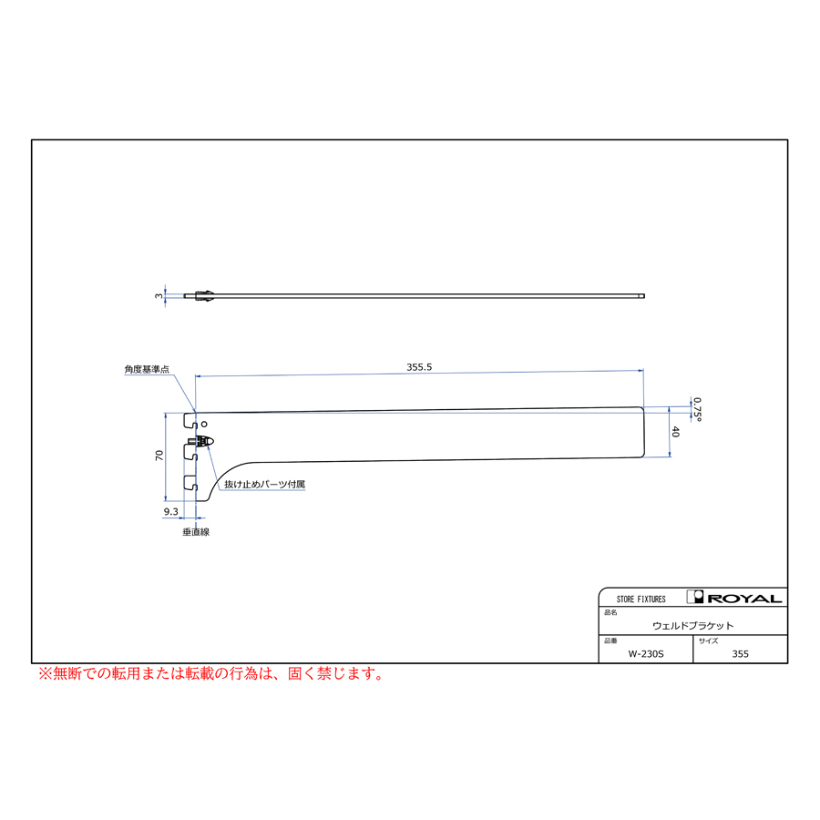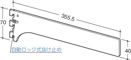 ●ブラケット装着時、無負荷状態では0.75°UPしております。(但し、t=2.0の棚柱のみ)