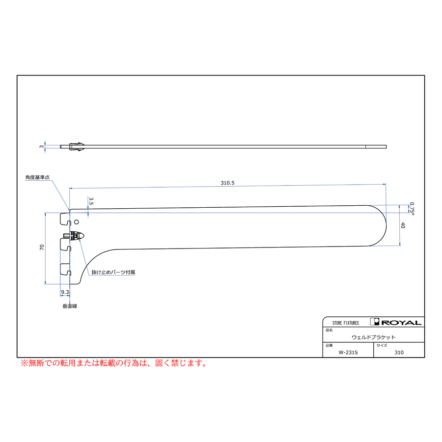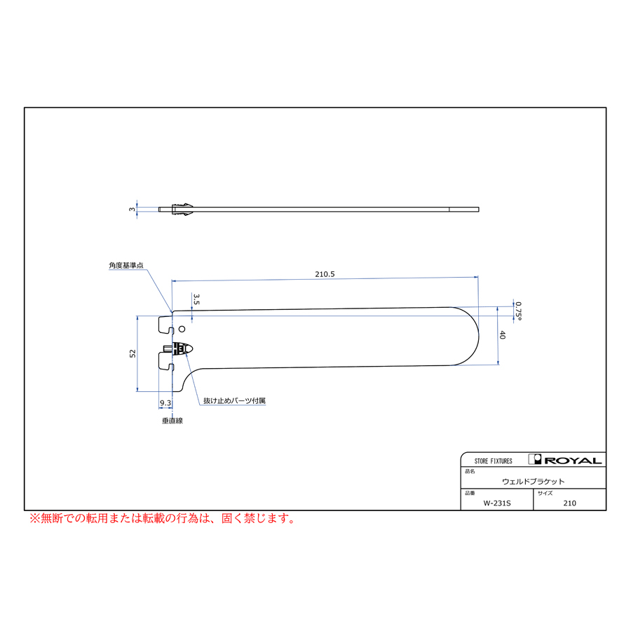 ●ブラケット装着時、無負荷状態では0.75°UPしております。(但し、t=2.0の棚柱のみ)