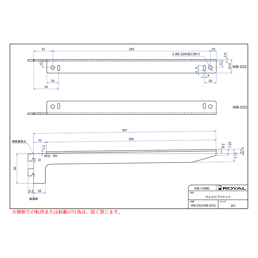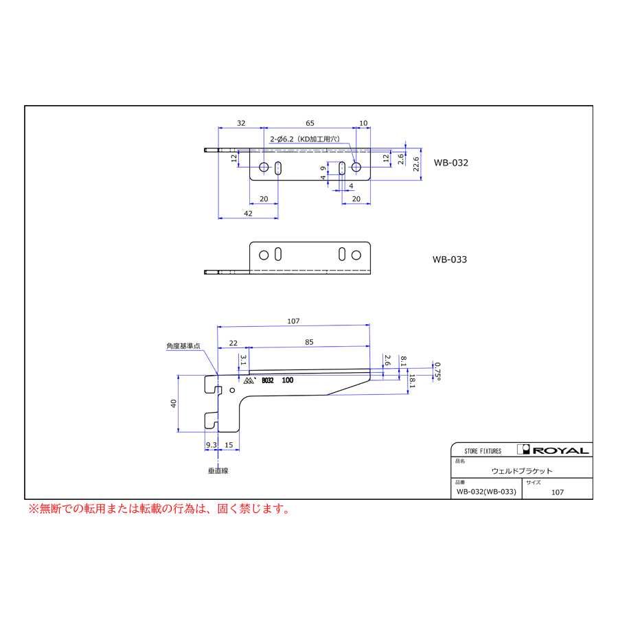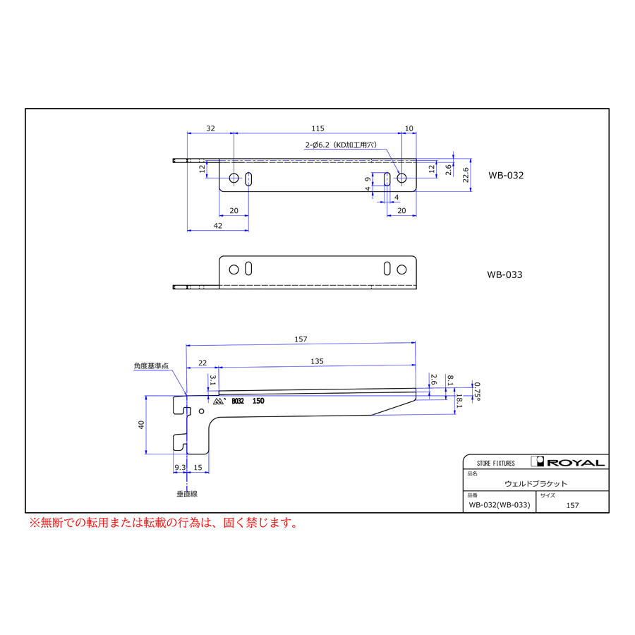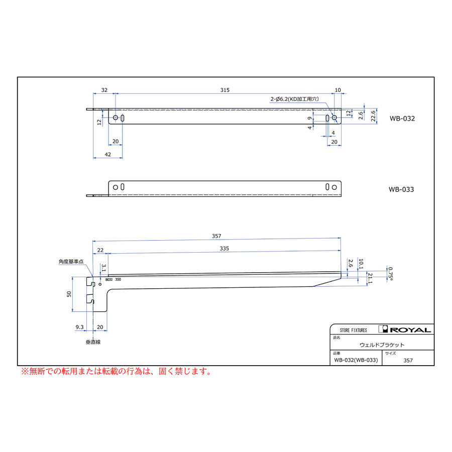 ●ブラケット装着時、無負荷状態では0.75°UPしております。(但し、t=2.0の棚柱のみ)
