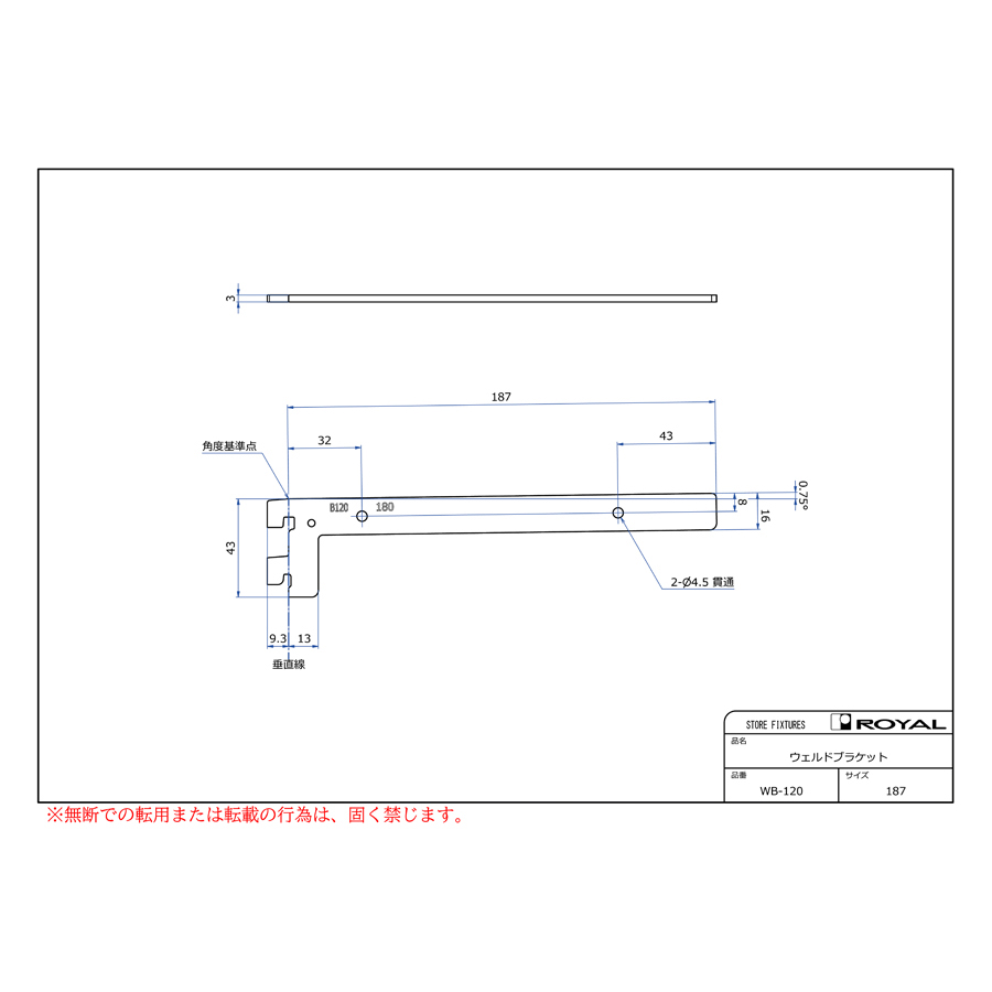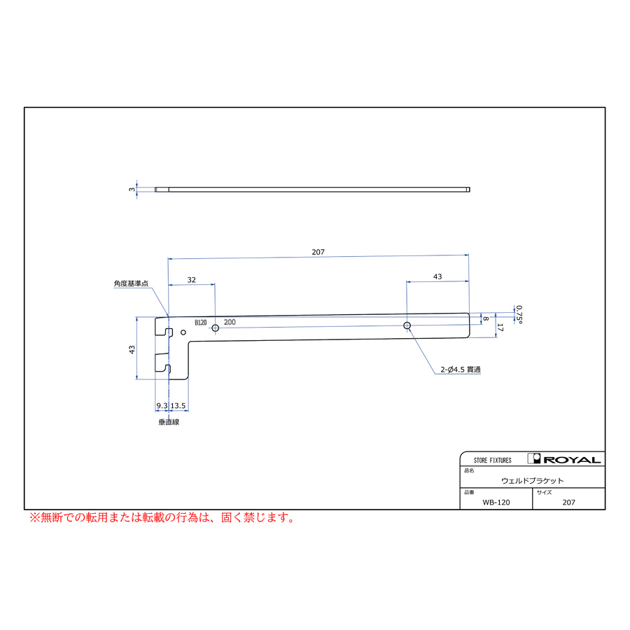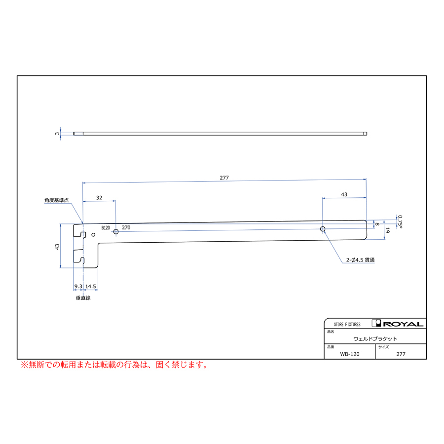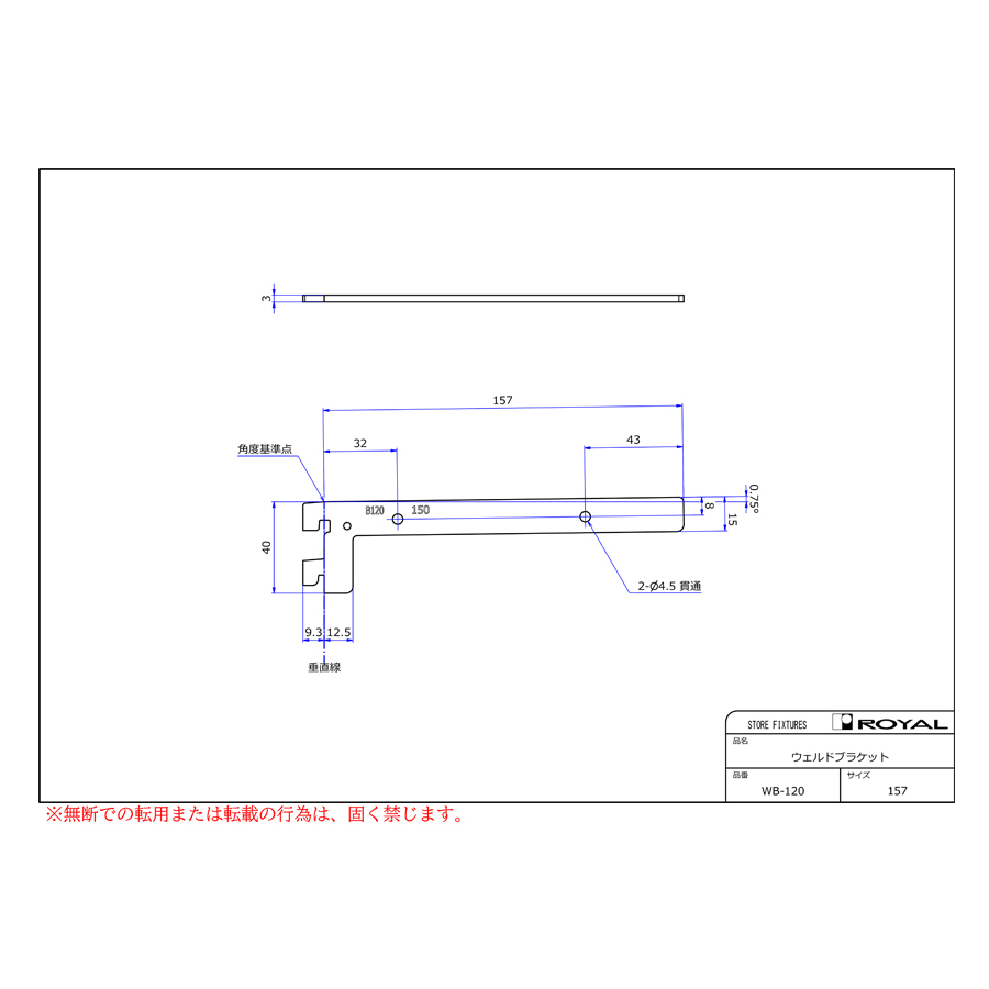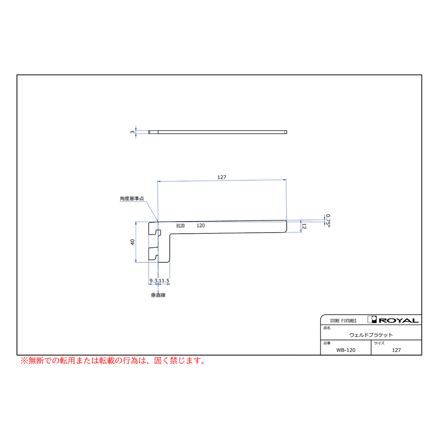 ●ブラケット装着時、無負荷状態では0.75°UPしております。(但し、t=2.0の棚柱のみ)