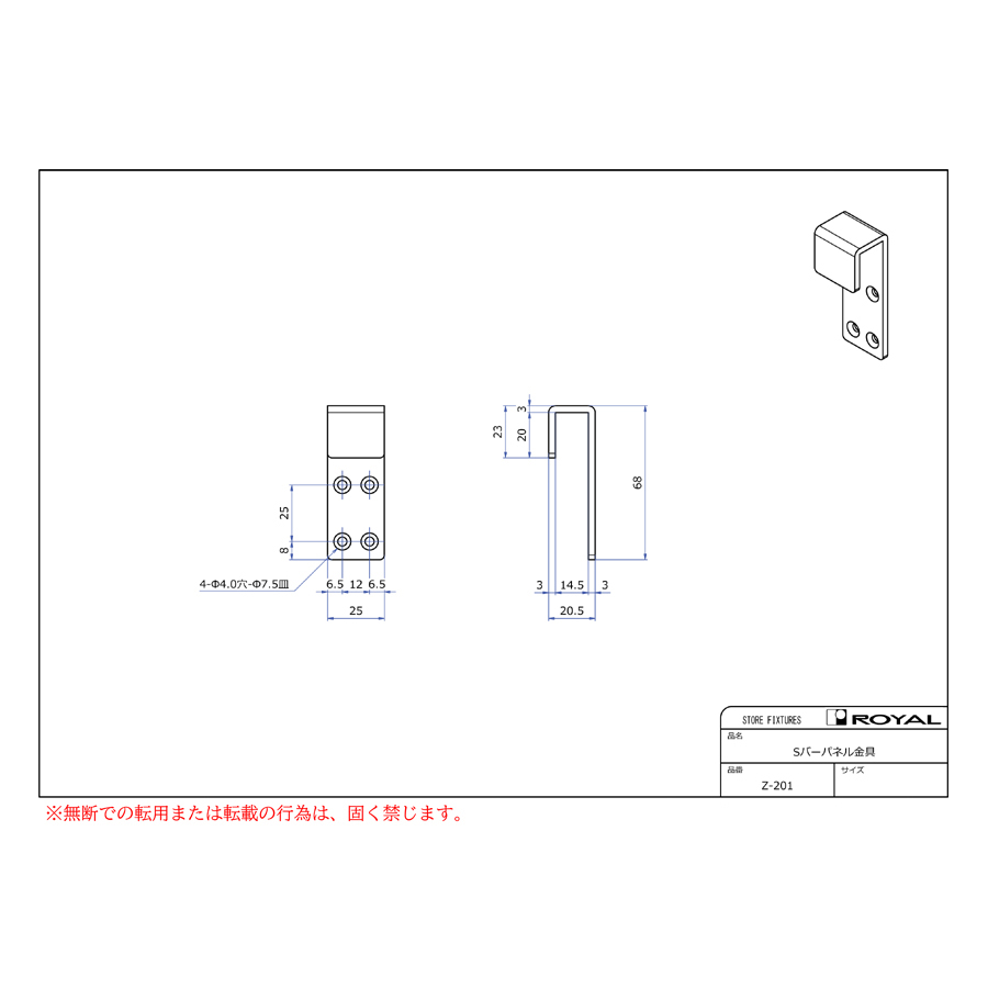 プロフィールhelp よくあるご質問 寸法図 パネル用ブラケット/サインパネル用ブラケット/単品掛け ●SB-24・32兼用 ●材質:スチール ●厚みt=3.0mm ●ビス穴径:φ7.5皿 φ4穴 ●環境負荷物質(SOC10)が非含有(基準値以下) menu_book カタログビューで見る